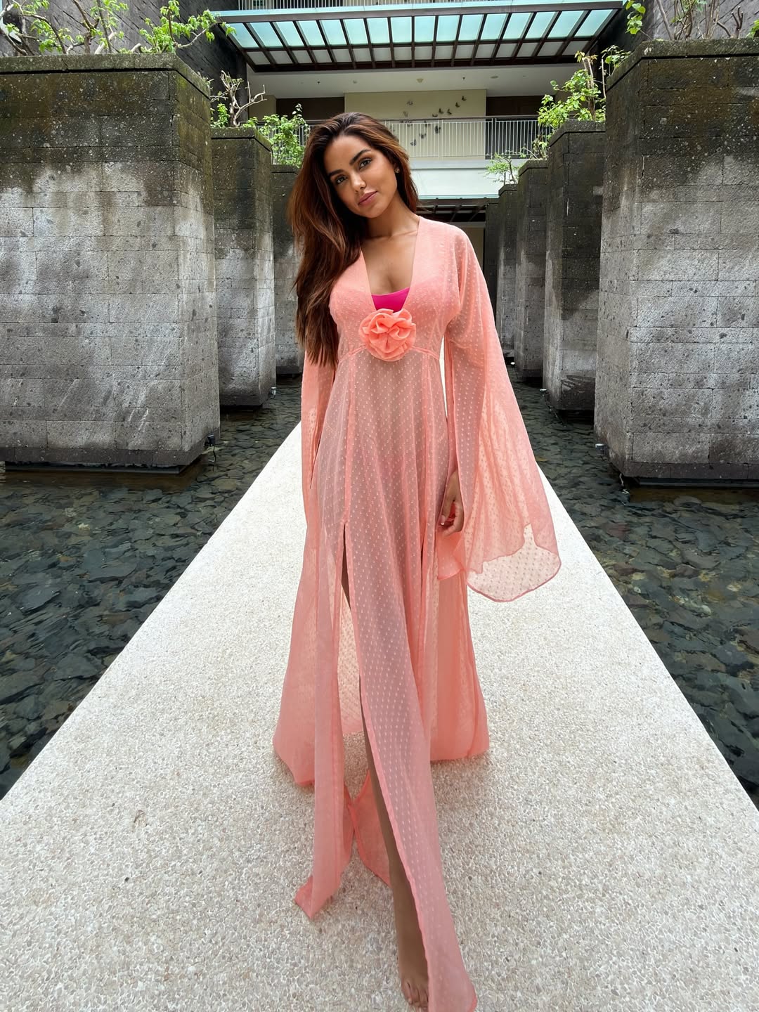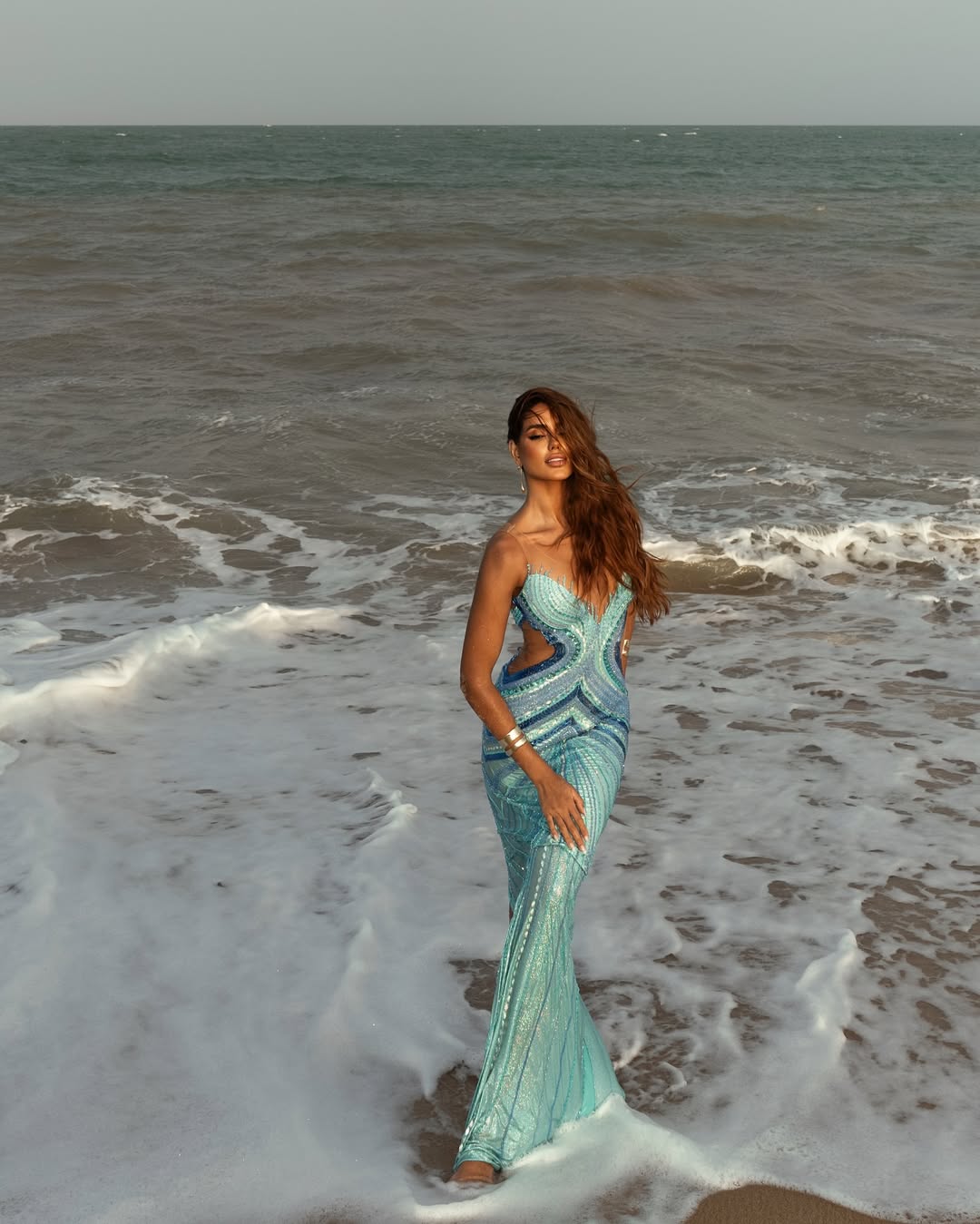 The beauty queen favors outfits with cut-outs, sheer fabrics, and fringe embellishments. Her fashion choices highlight her bold and contemporary style.