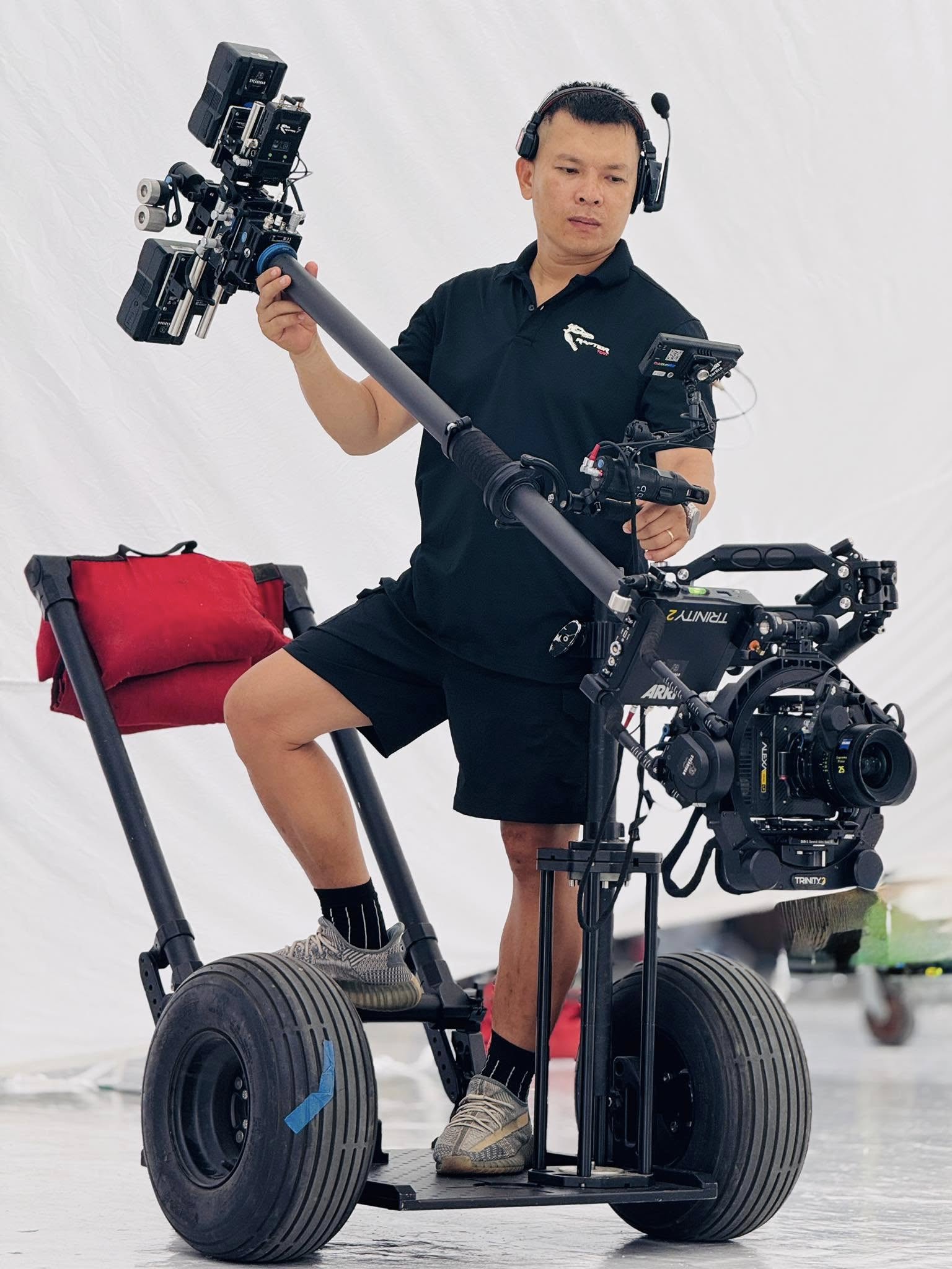 Le Bao Han using the Arri Trinity 2 steadicam system during a film shoot. Photo: Provided by the subject. |