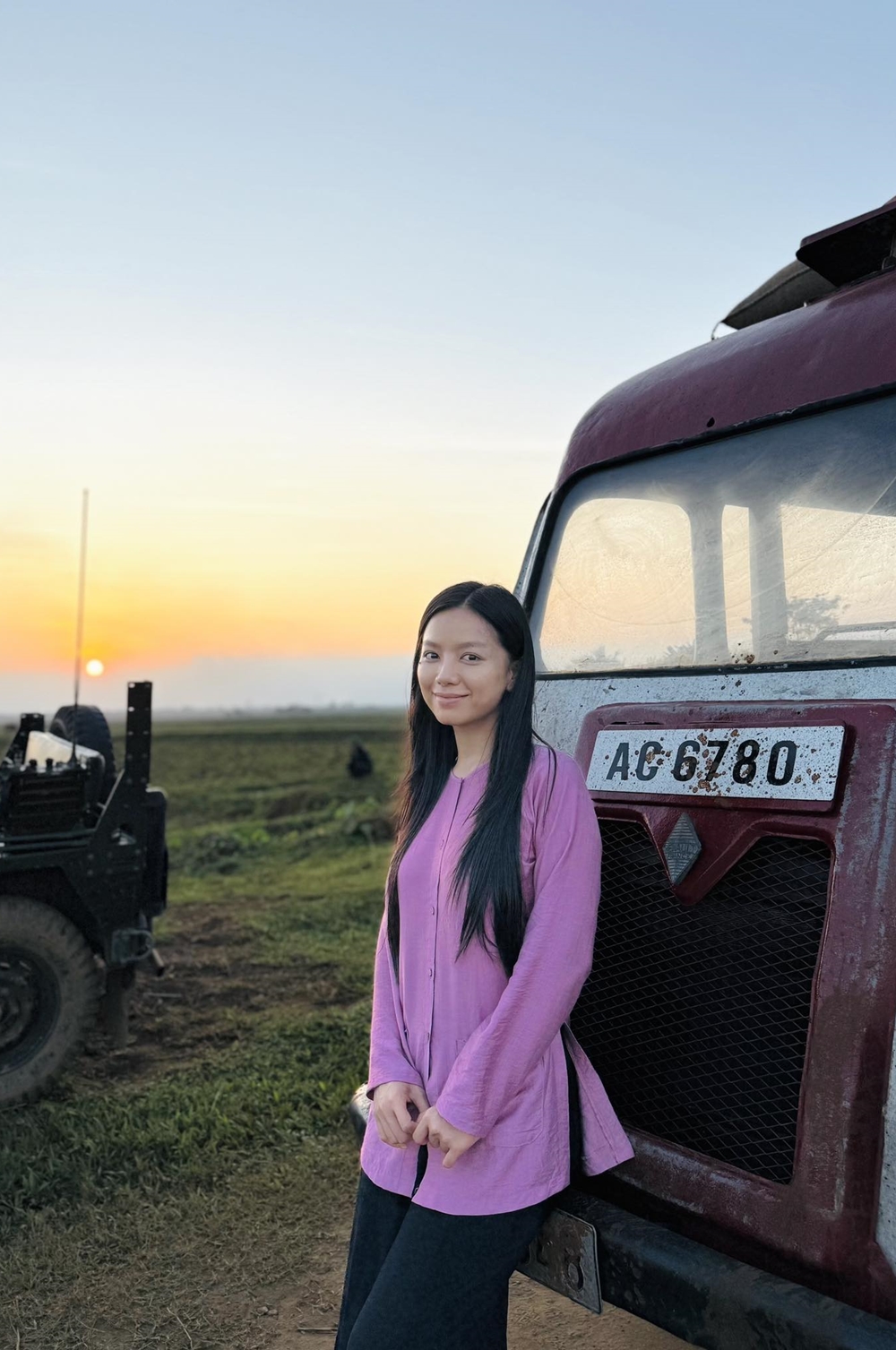 Unlike her sharp image in fashion photoshoots or her feisty on-screen persona, Ha Anh exudes gentleness in her daily life.