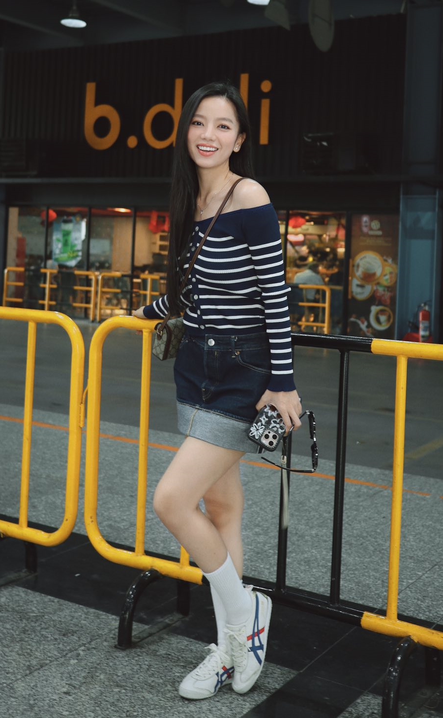 Ha Anh looks youthful in a jumper dress paired with a T-shirt.