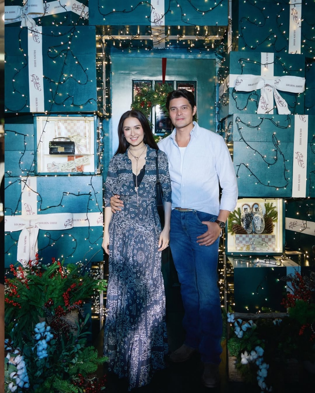 At the Christmas 2025 party, Marian Rivera highlighted her bare shoulders with a floral strapless dress by fashion house Posse. Actor Dingdong Dantes looked relaxed, combining an animal and nature-patterned shirt, khaki pants, and a straw cowboy hat.
