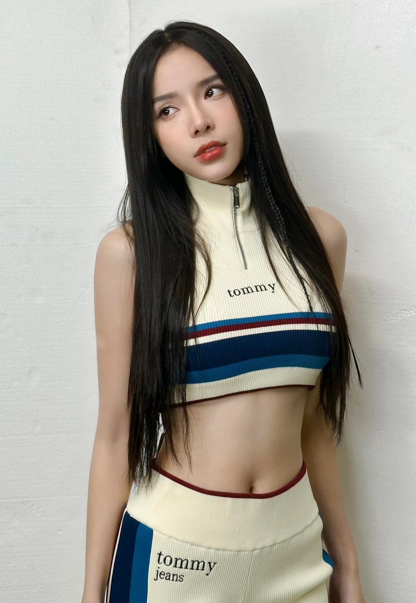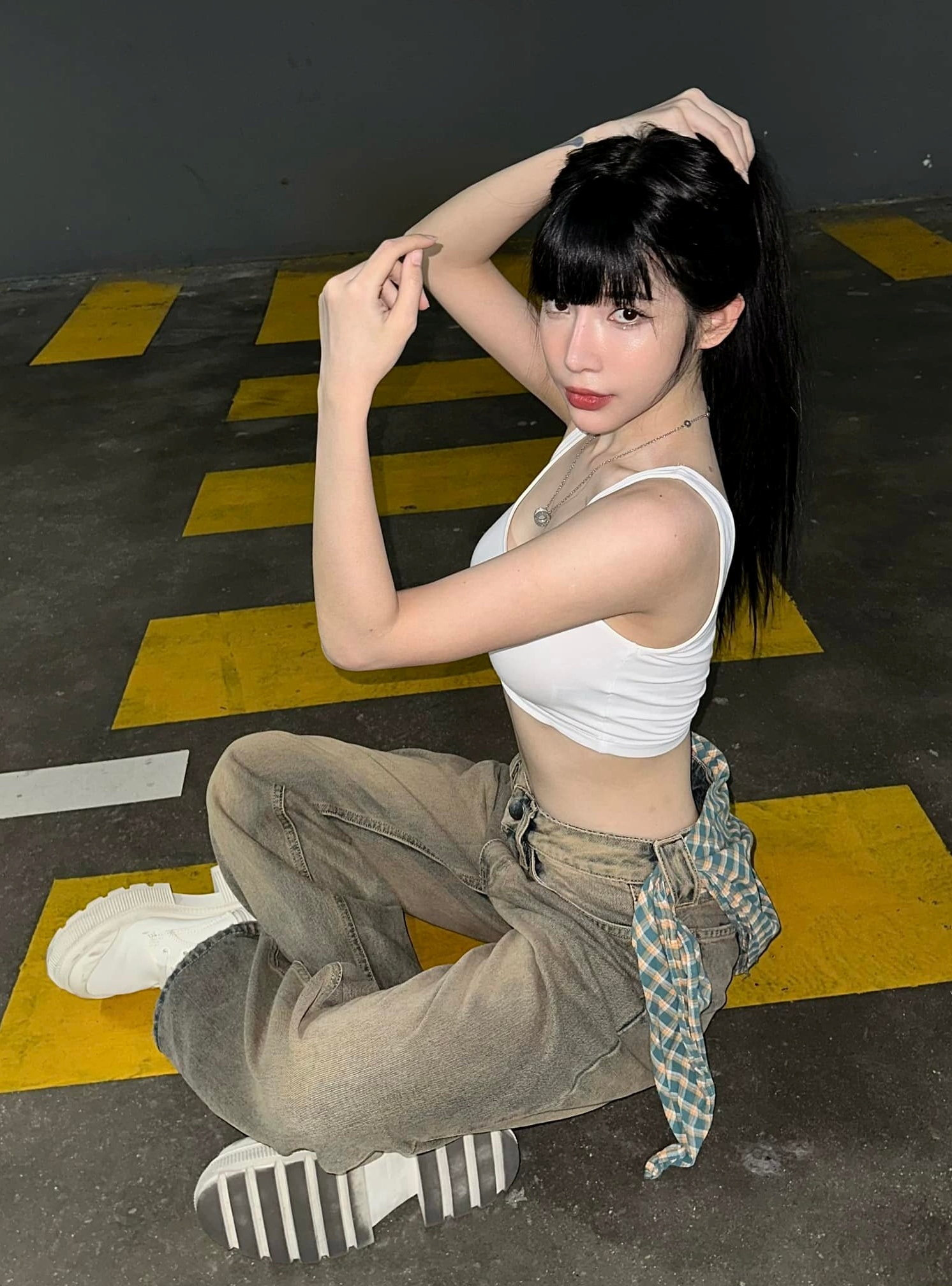 Whether styling student-inspired or street-style outfits, LyLy consistently draws attention with her flat waist.