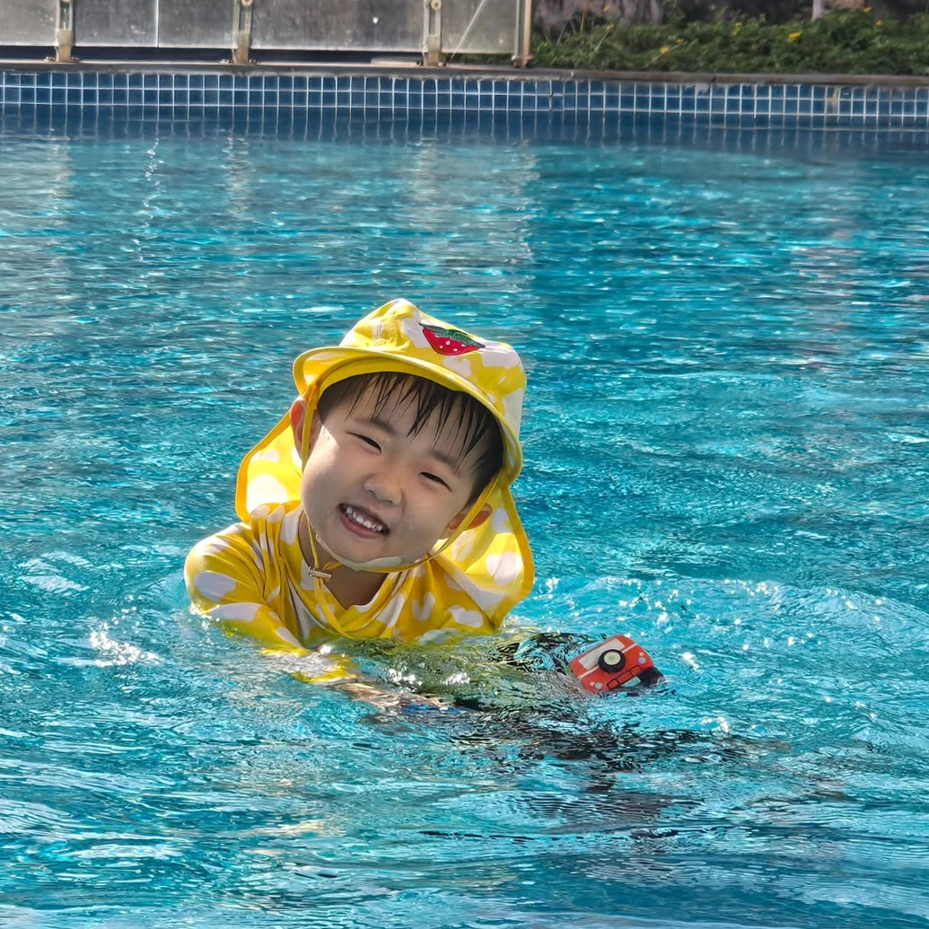 The star posted a photo of his son at a swimming pool when the family traveled to Vietnam in January. |