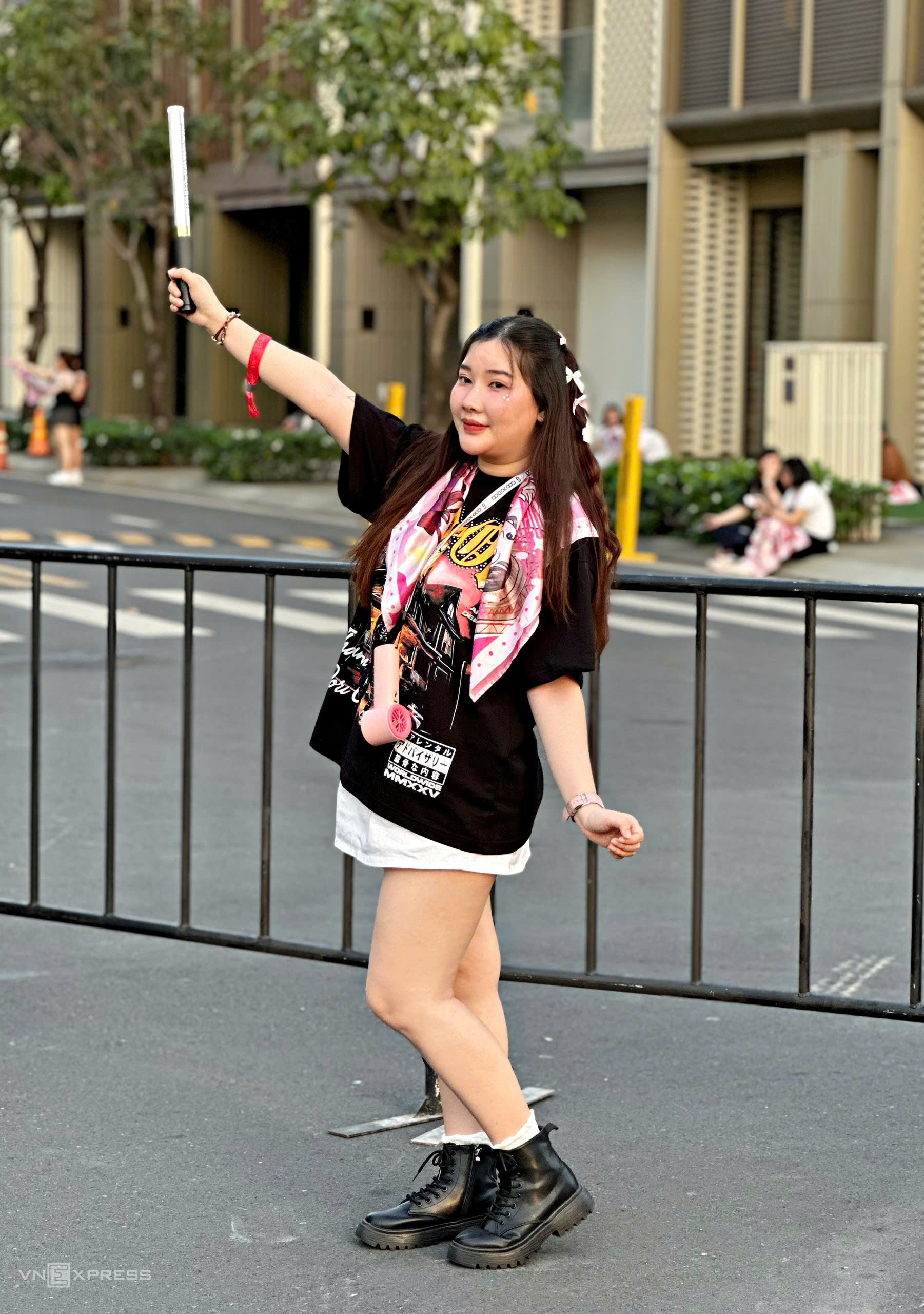 A group of young friends from Hoa Minzy's fan club in Can Tho. They arrived in TP HCM one day prior to attend the show. Tran Ngoc Thuy, 25, stated: "We are eager to hear the hit songs that have defined her 12-year career. I believe she will have an even more explosive year." |