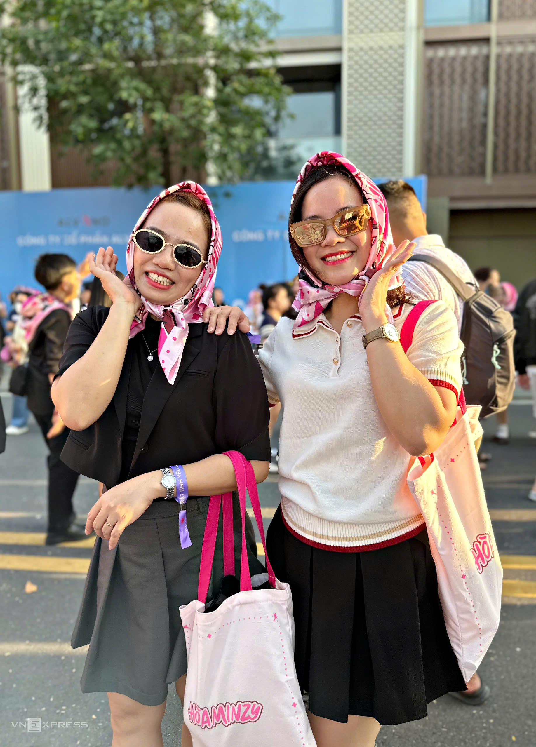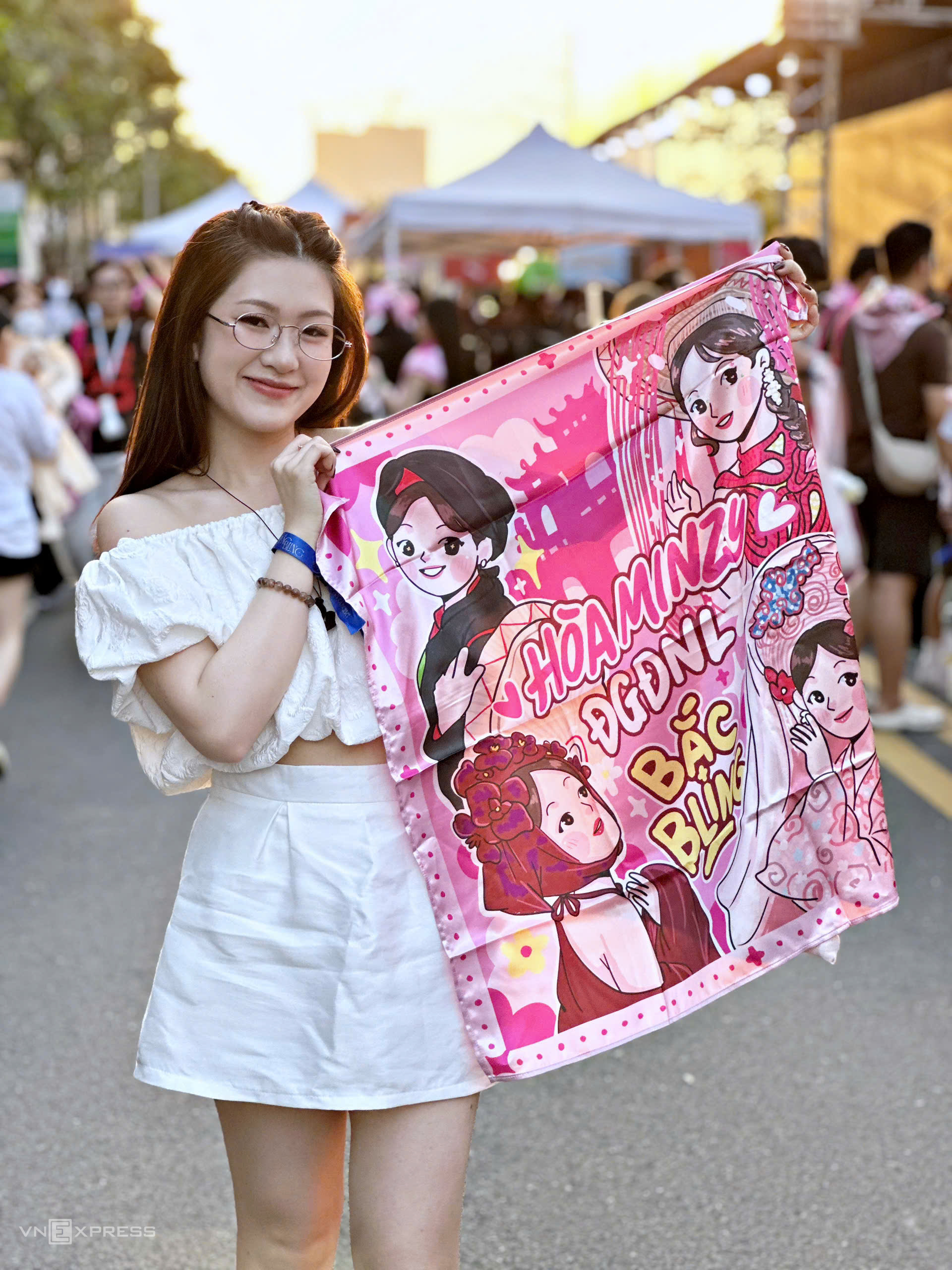 Attendees received scarves printed with a cartoon image of Hoa Minzy. |
