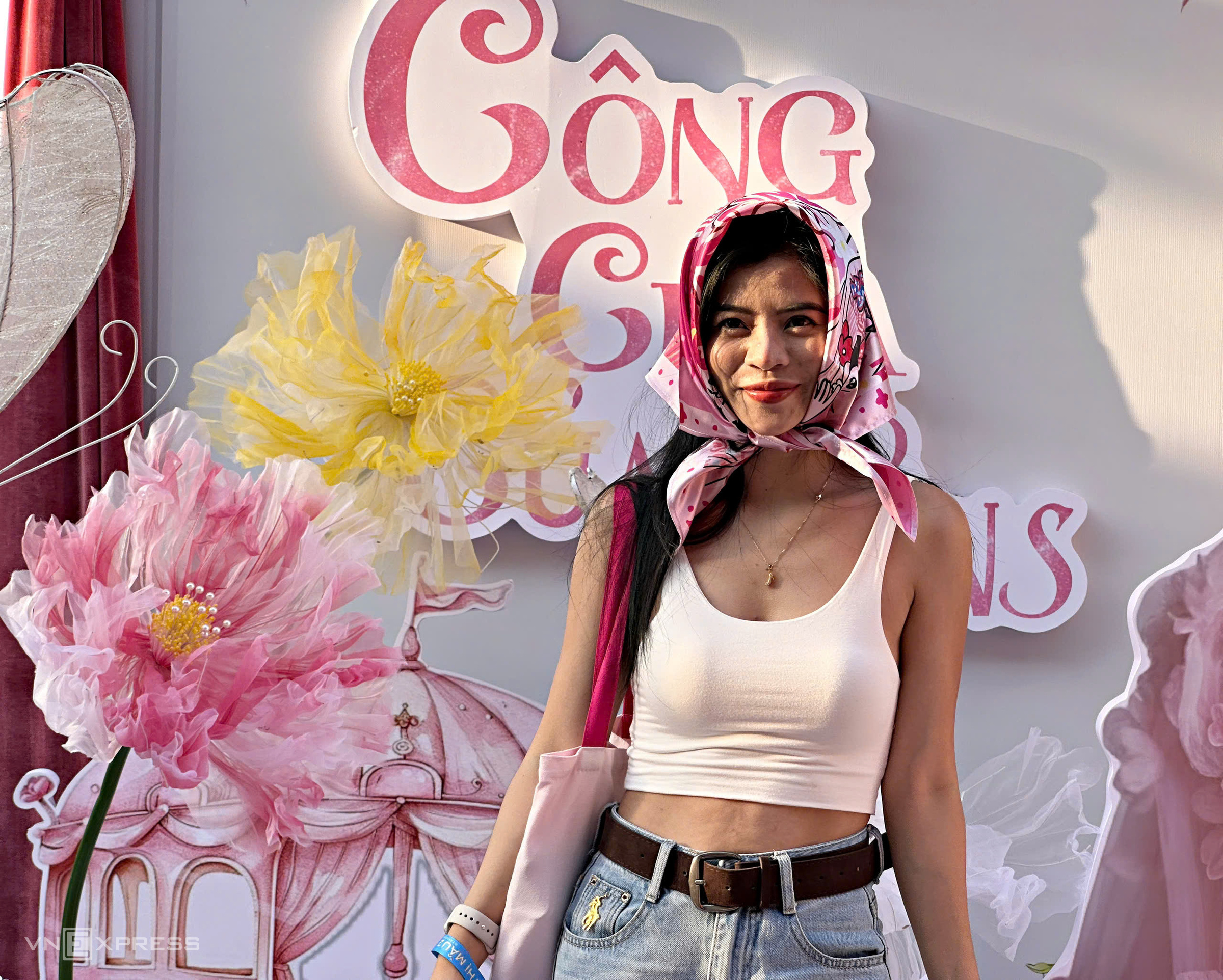Many spectators appeared in traditional Vietnamese bodices and skirts, similar to Hoa Minzy's attire in the "Bac Bling" music video. |