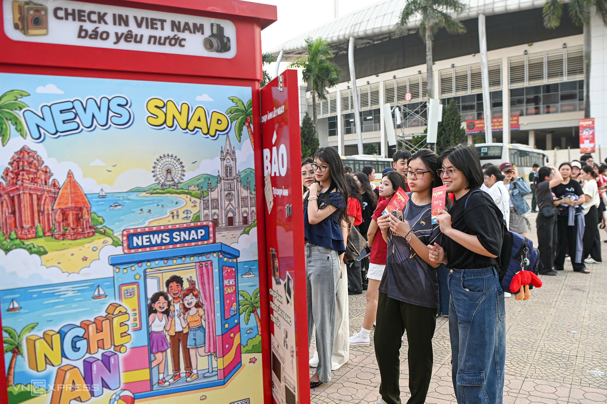 Attendees passed through security checks before entering. Earlier, spectators registered for free tickets via the Tuyen Giao va Dan Van application. |