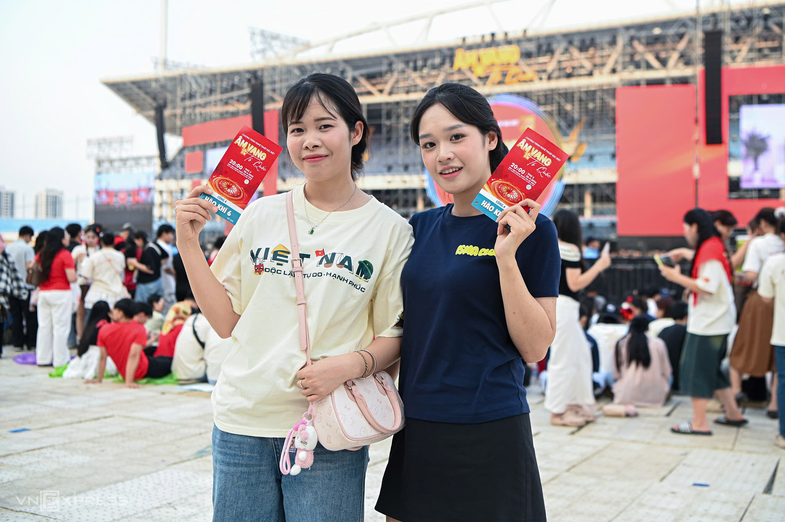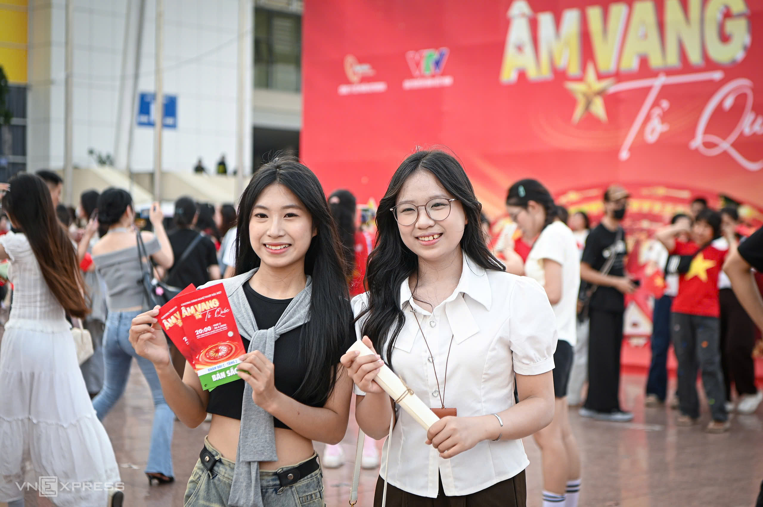 Two Gen Z spectators displayed their tickets for the Am Vang To Quoc program.