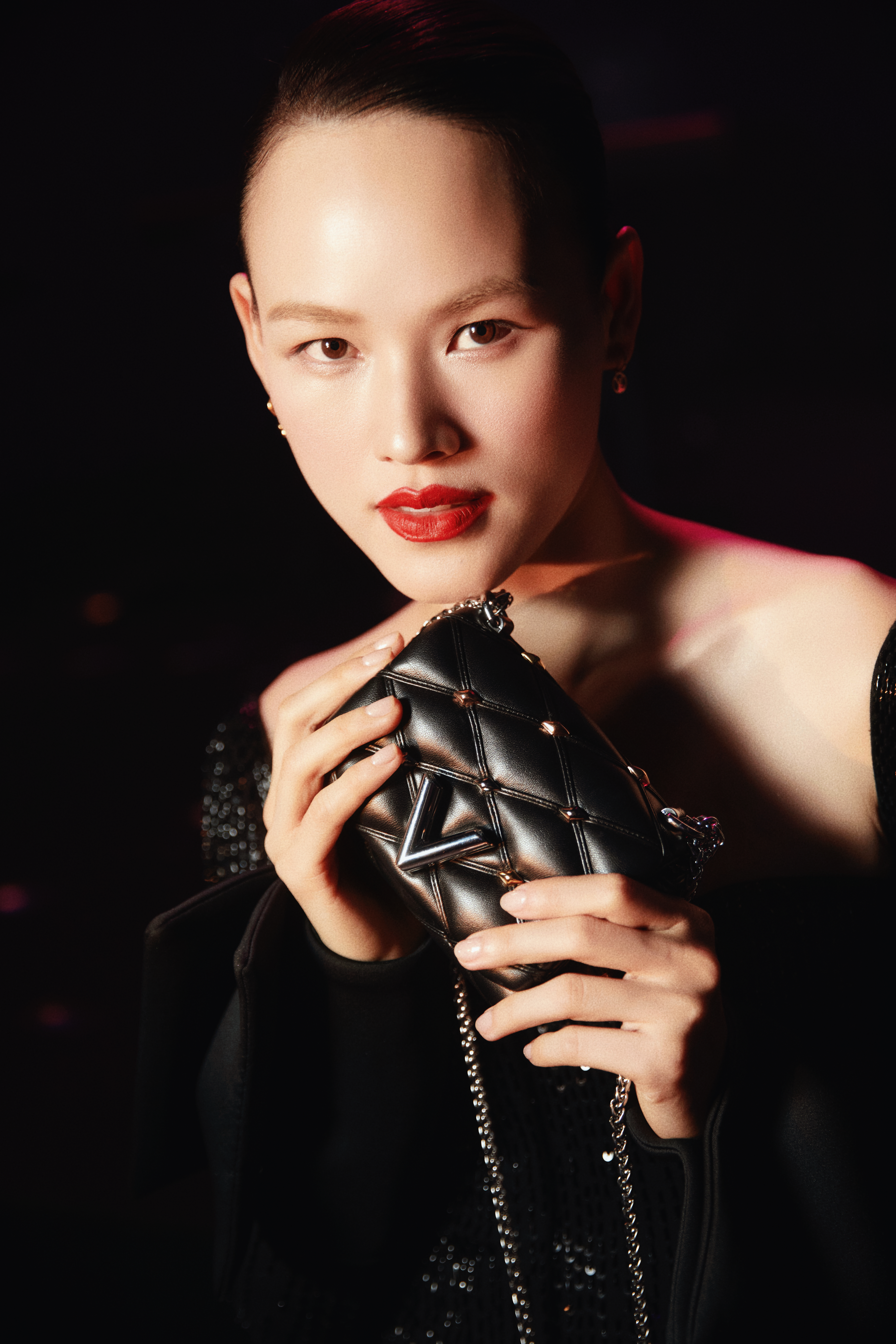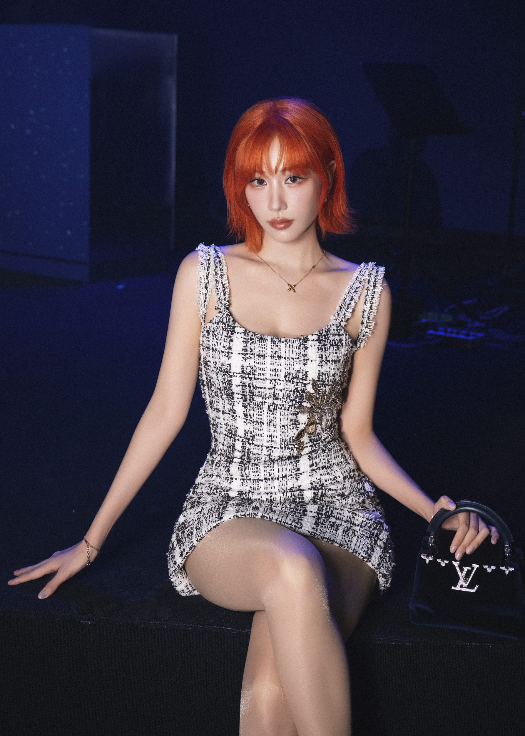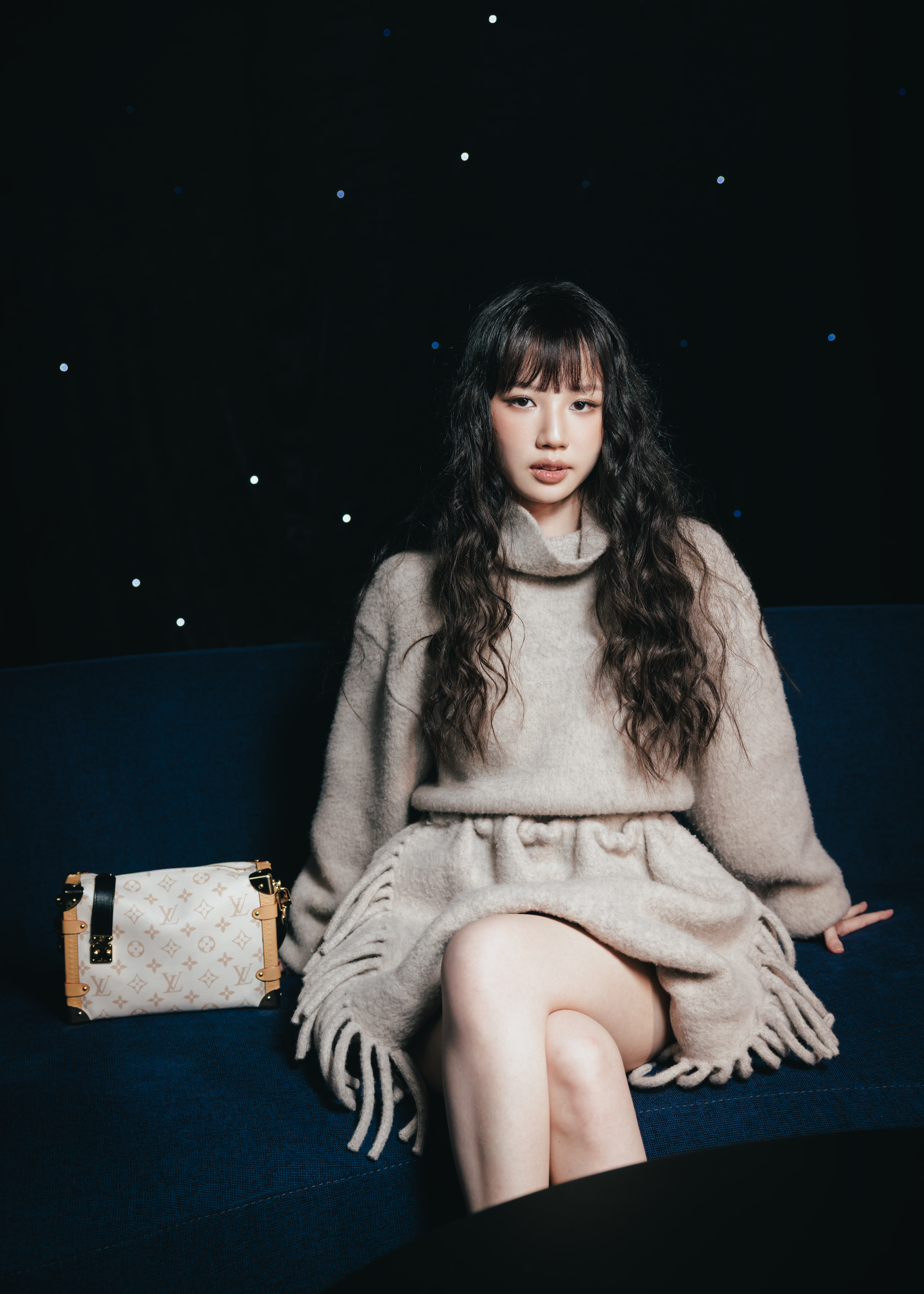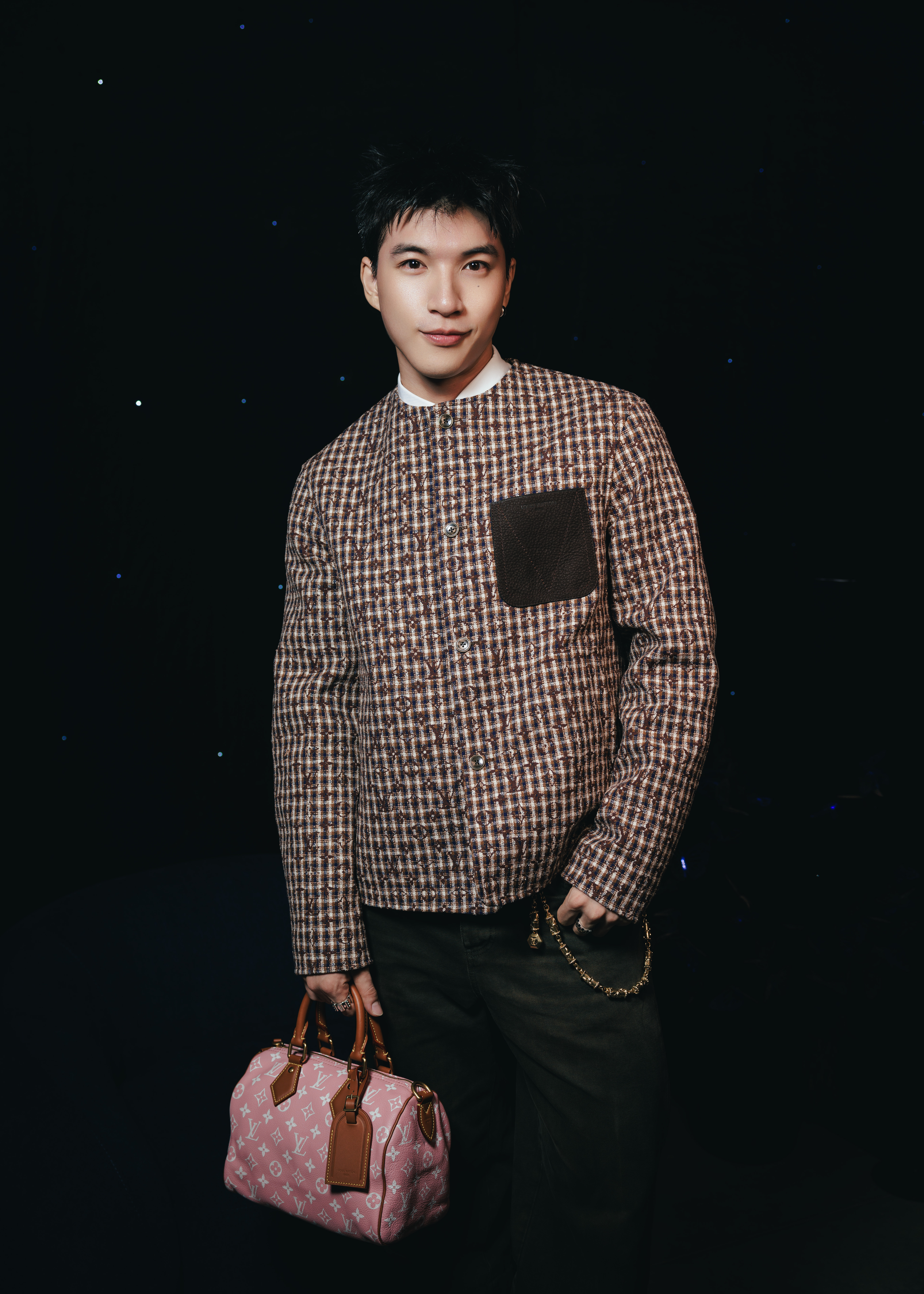 Rapper Hieu Thu Hai wore an ensemble from the French fashion house's Pre-Spring 2026 collection, featuring a Monogram patterned jacket, jeans, and a pink Speedy P9 Bandouliere bag.