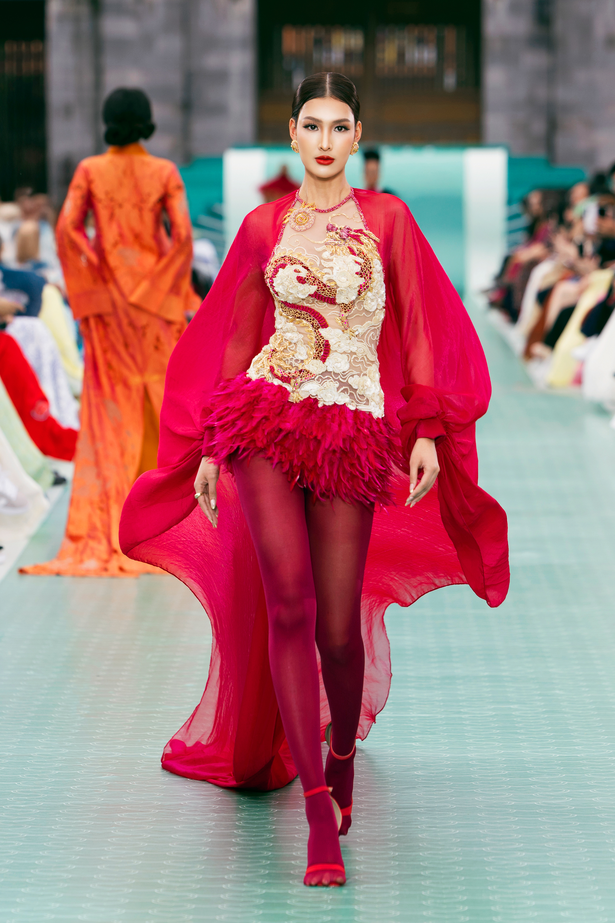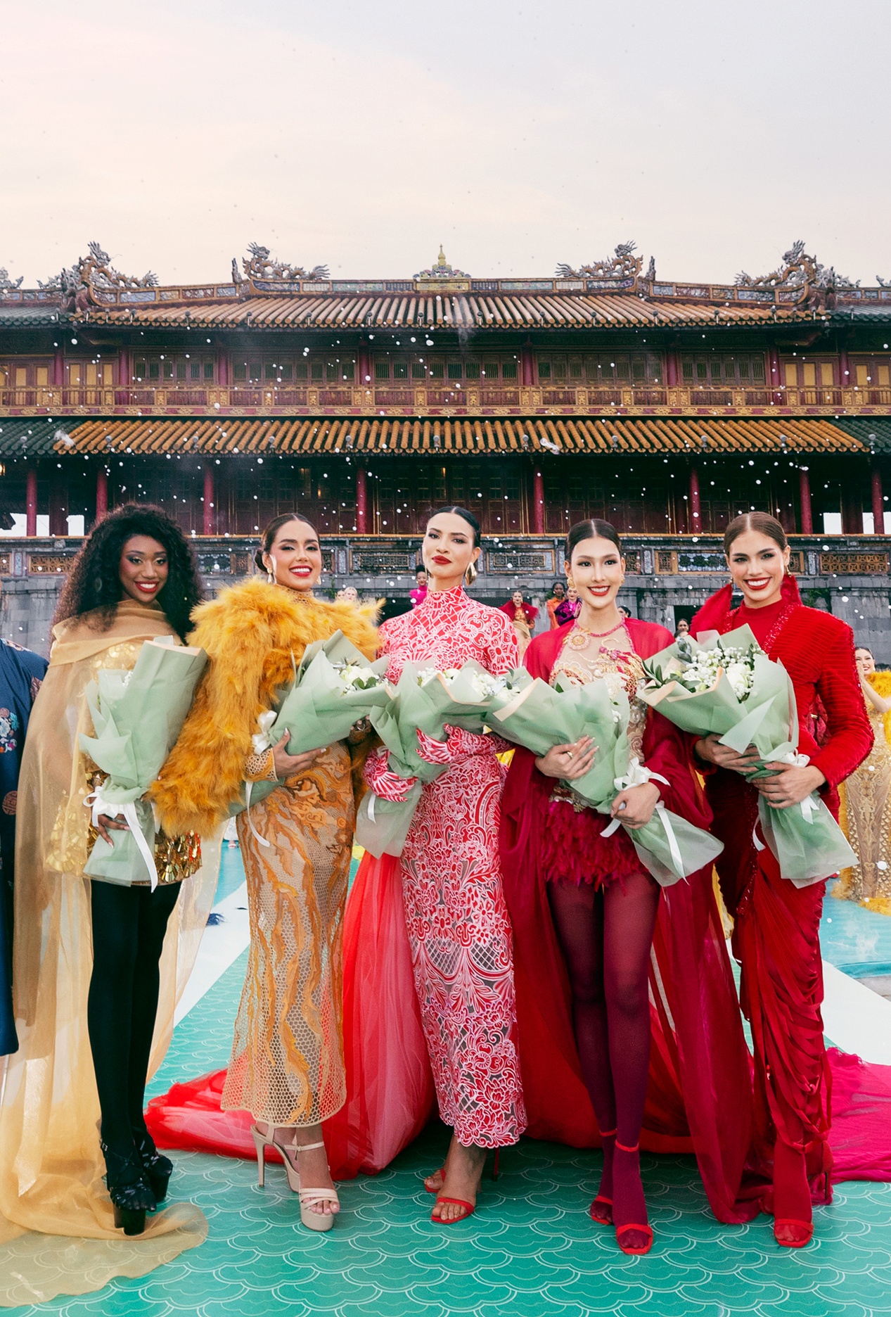 They showcased designer Le Thanh Hoa's new collection at Ngo Mon Square, Hue Imperial City, during the Hello Cosmo From Vietnam event on 2/12. The top five best performers were selected by the judges, and the winner will be announced at the final. |