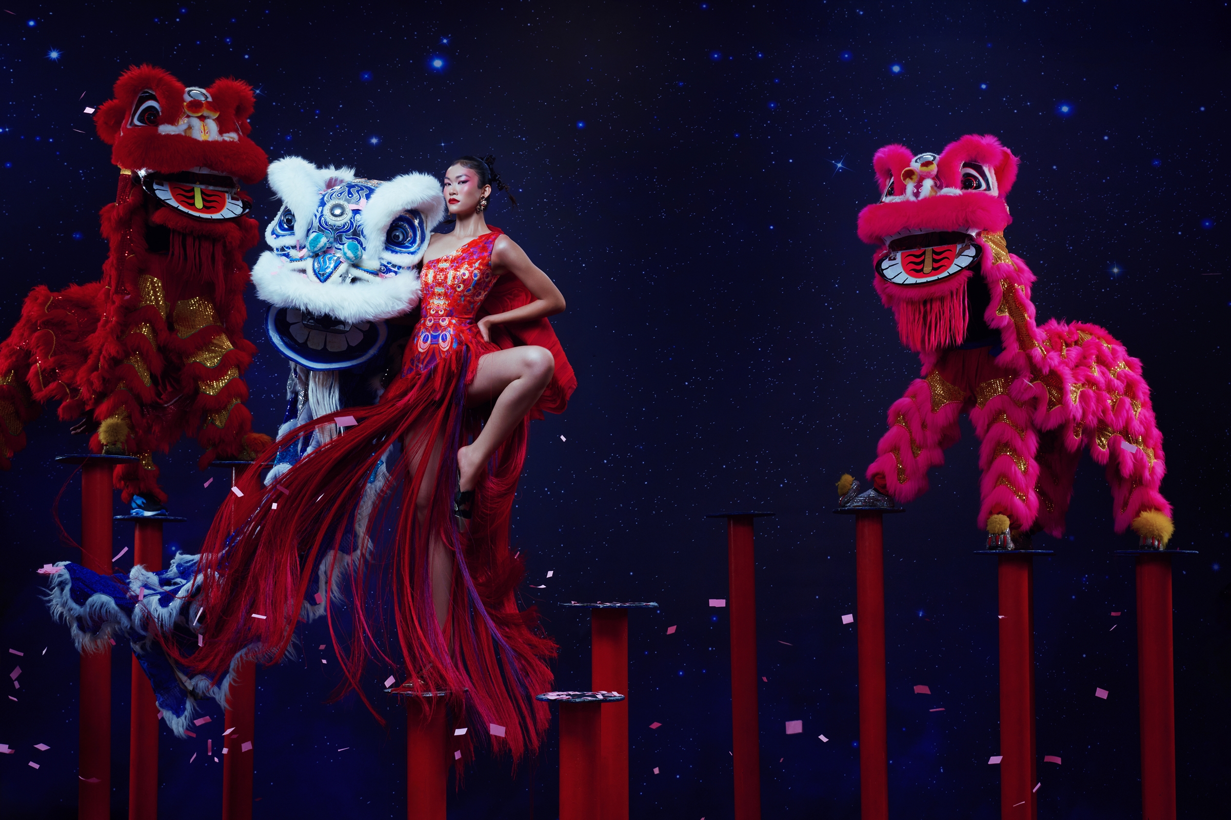 In episode 7, the contestants participated in a photoshoot inspired by the Mid-Autumn Festival and the art of lion and dragon dances. They had to pose on tall, unstable floral columns, requiring balance and poise. Contestant My Ngan won the challenge, receiving praise for her posing and presence.
