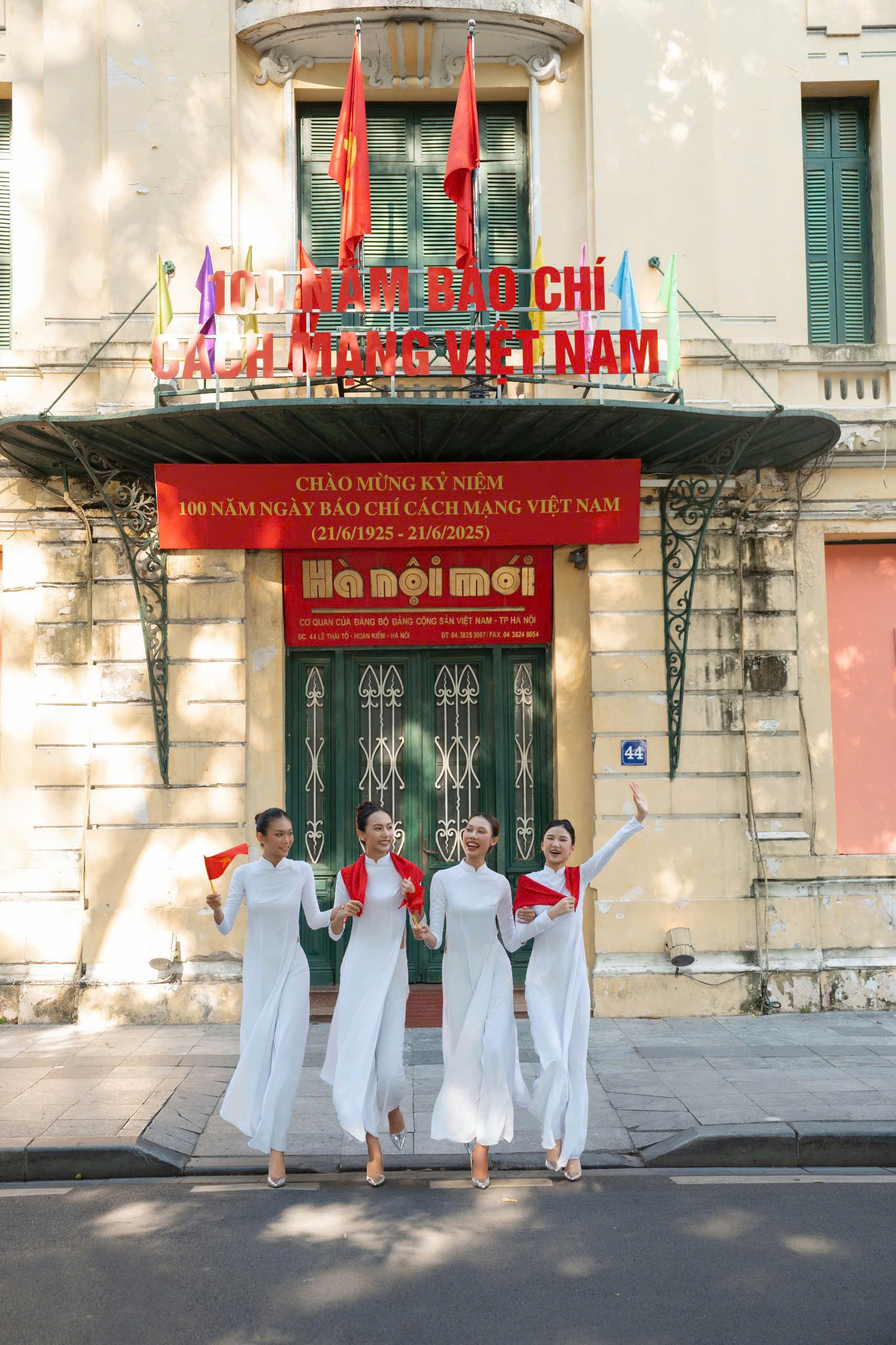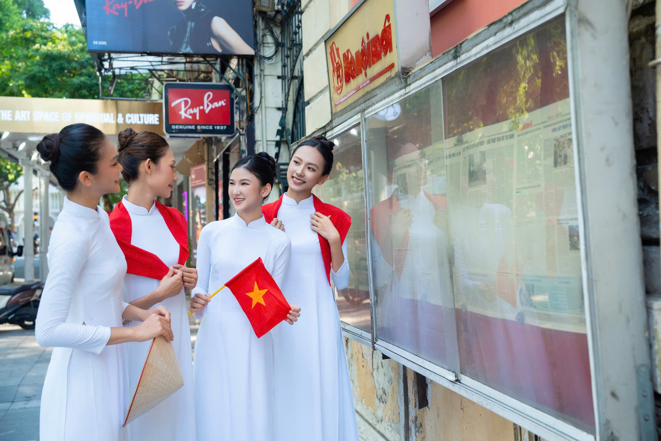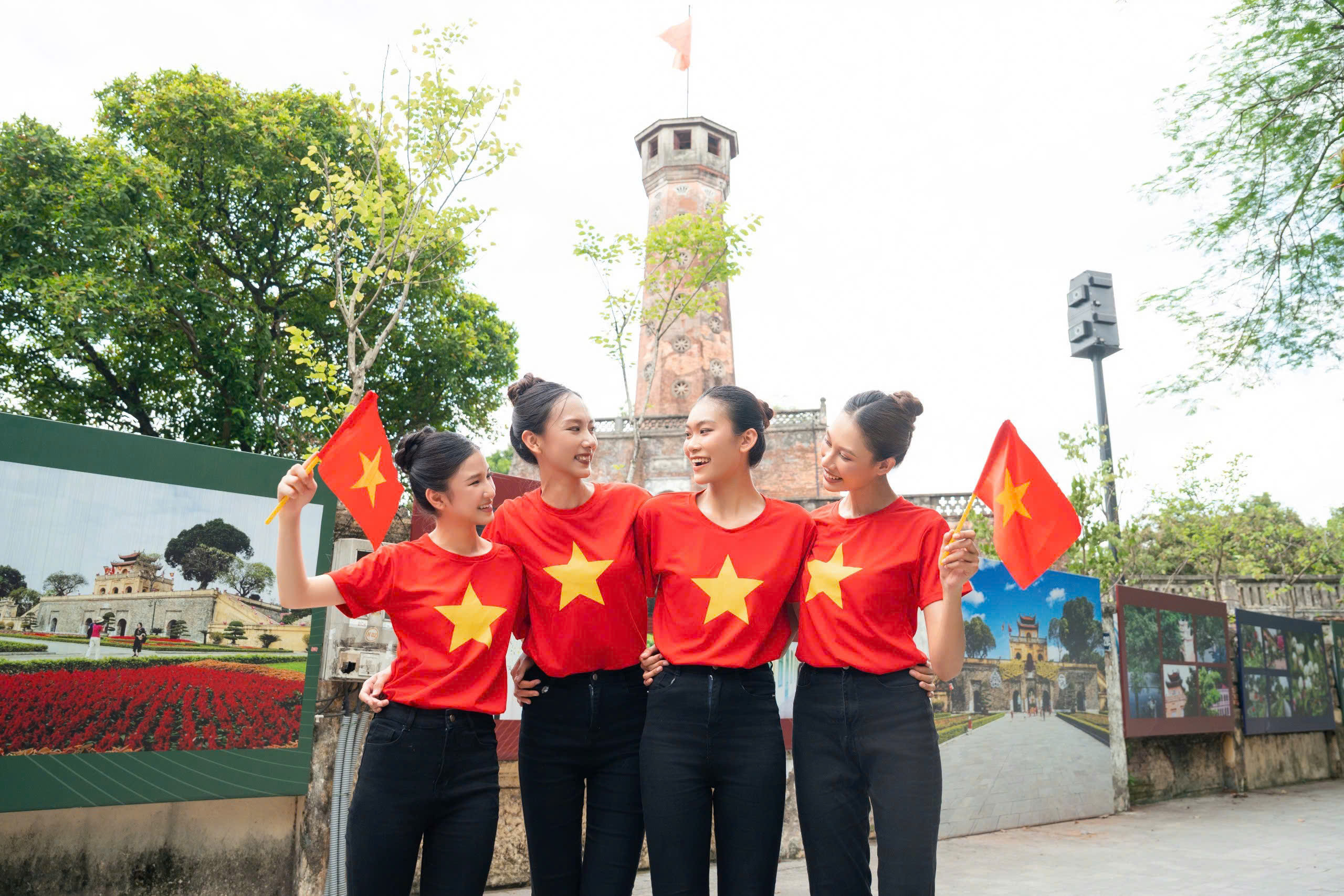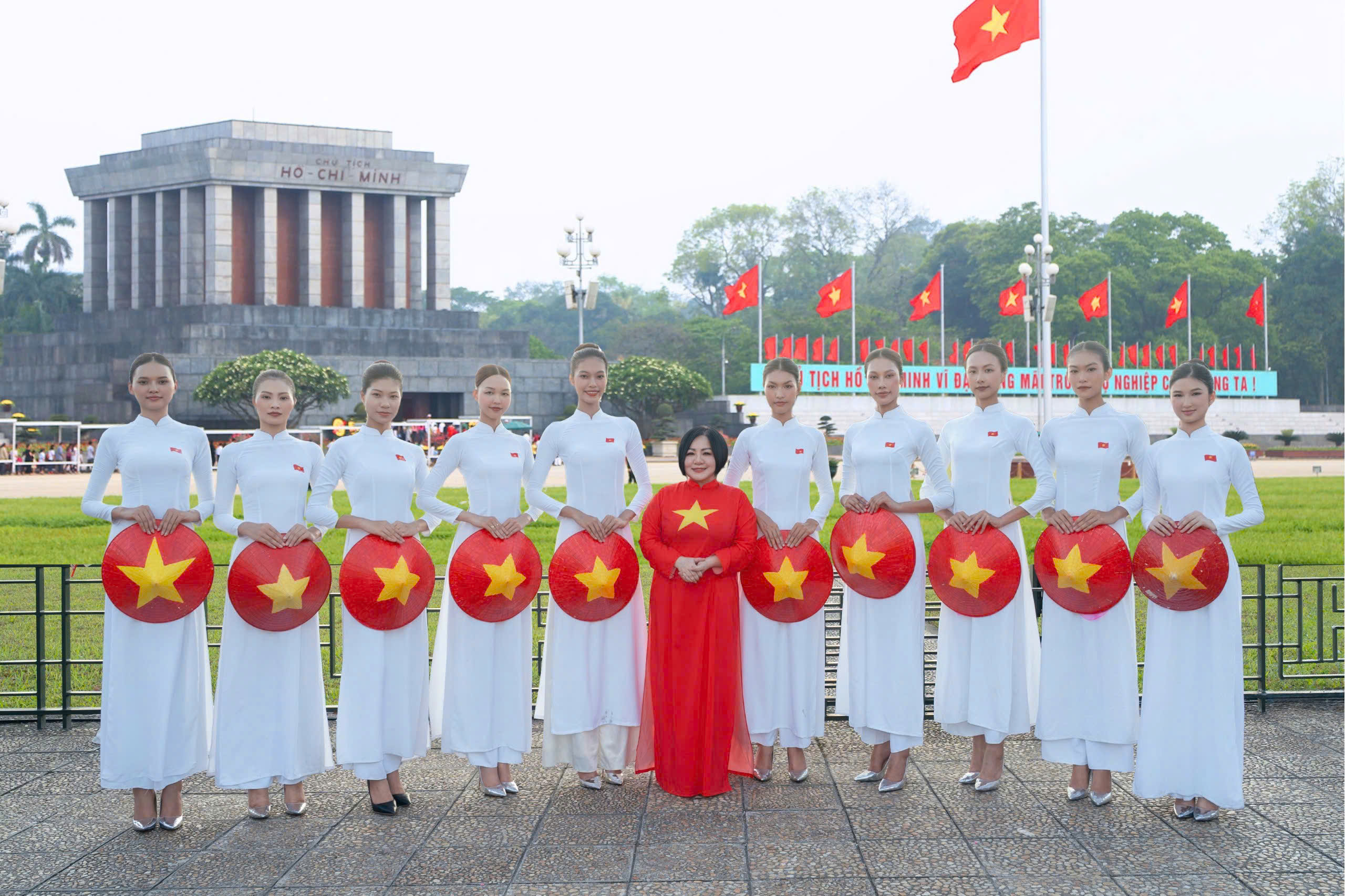Wearing ao dai, the contestants visited several historical landmarks and scenic spots in the capital, such as the Ho Chi Minh Mausoleum, Hoan Kiem Lake, and the Hanoi Flag Tower.