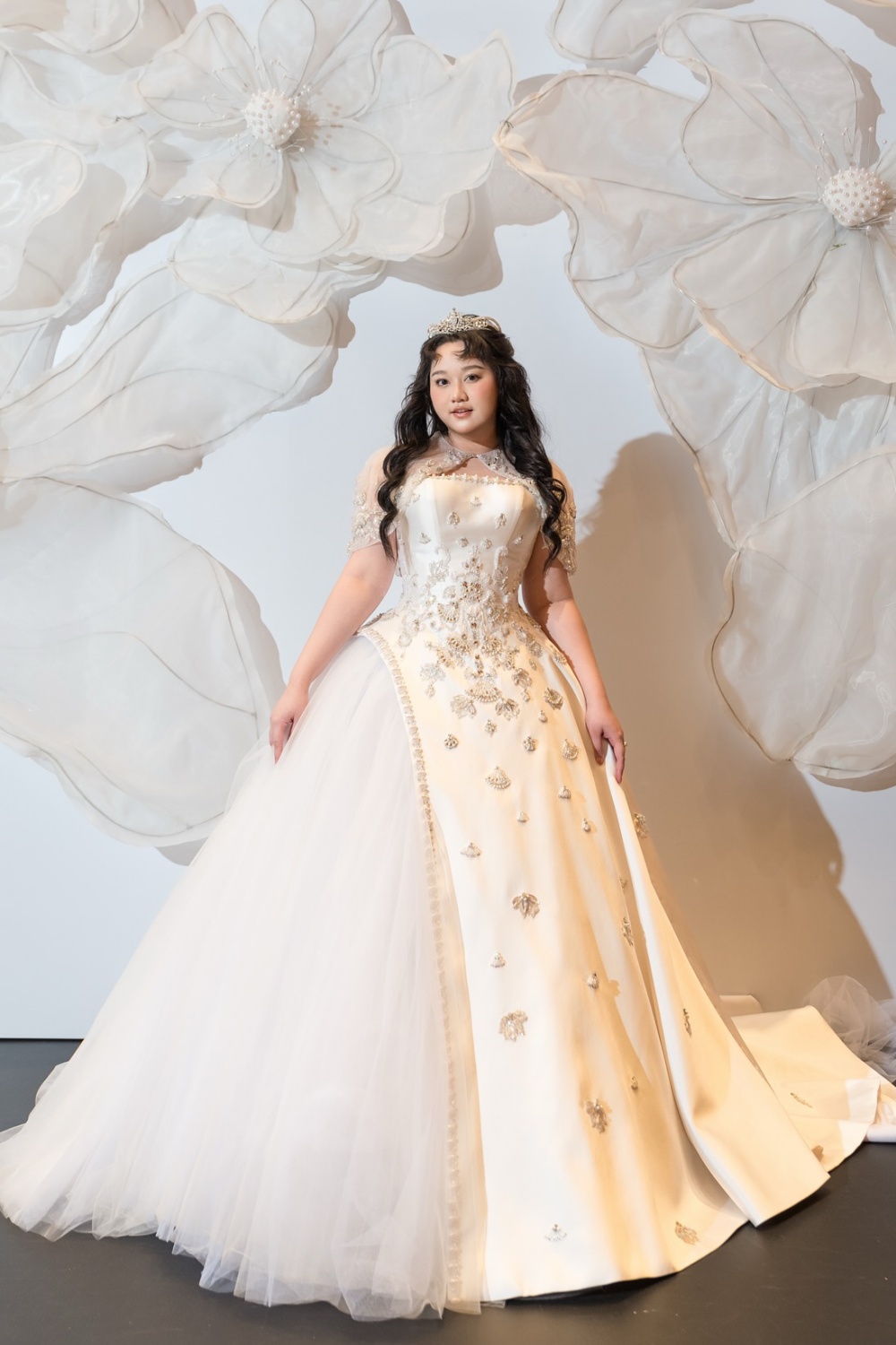 The actress looked like a princess in a jeweled gown with sheer voile at a fashion show in late May in Ho Chi Minh City. |