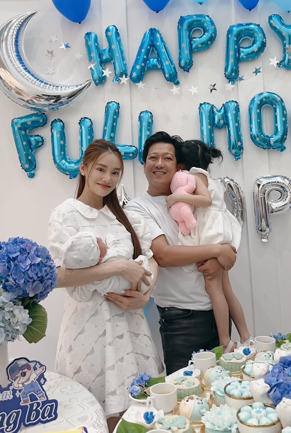 Truong Giang's family during their son Hope's one-month celebration in 2023.