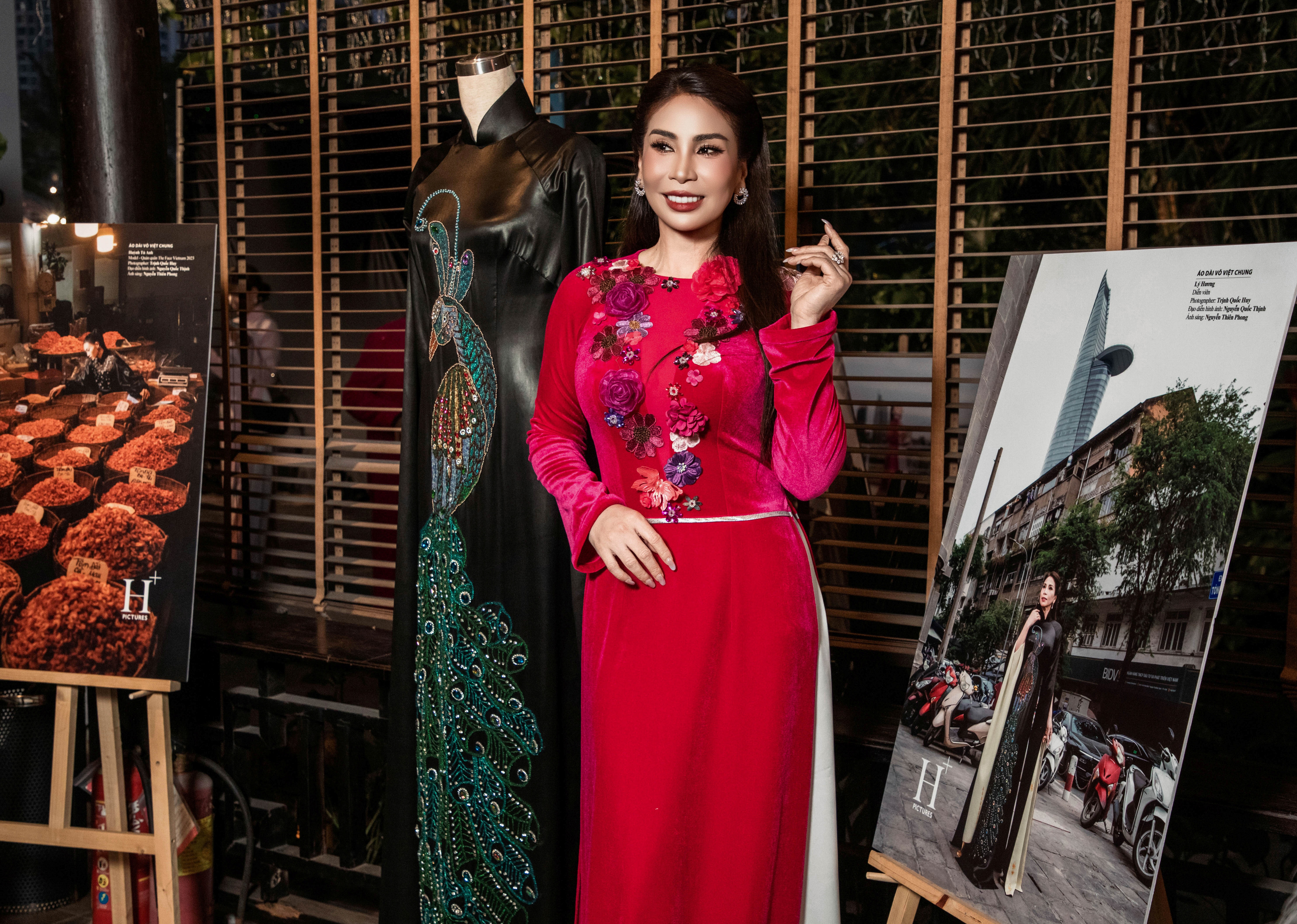 Many other prominent figures from the entertainment and fashion industries attended to support Vo Viet Chung. These included designer Thuan Viet, actor Hien Mai with her husband and son, Miss Ha Kieu Anh, actor Kieu Trinh, and Ly Huong, a frequent muse for Vo Viet Chung and one of the 30 individuals featured in his photo book project. Actor Truong Minh Cuong wore an ao dai made from Lanh My A, a material integral to Vo Viet Chung's work for many years. Miss Ocean 2025 Nguyen Thanh Thao admired a dragon-patterned ao dai by the designer. Other attendees included beauty Duong Yen Ngoc, singer Thao Trang, and actor Tu Vi.