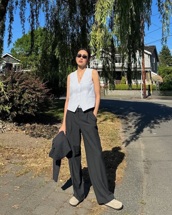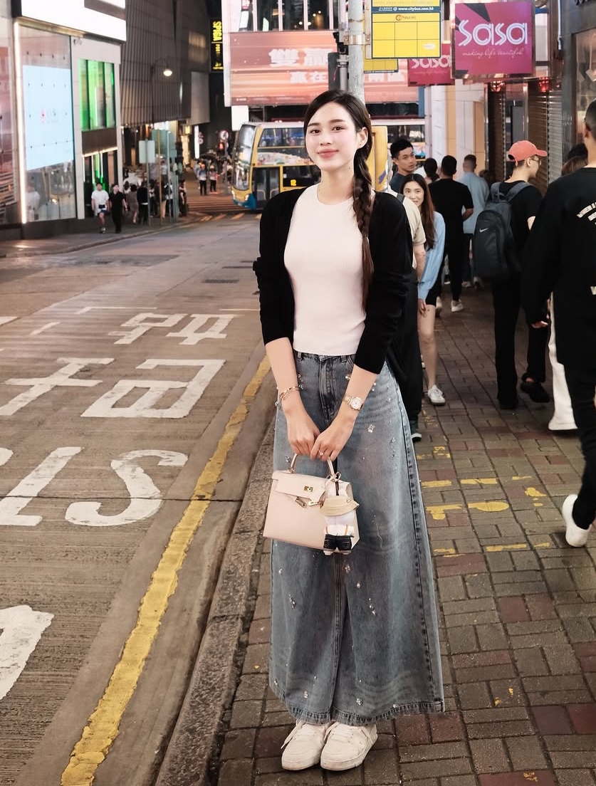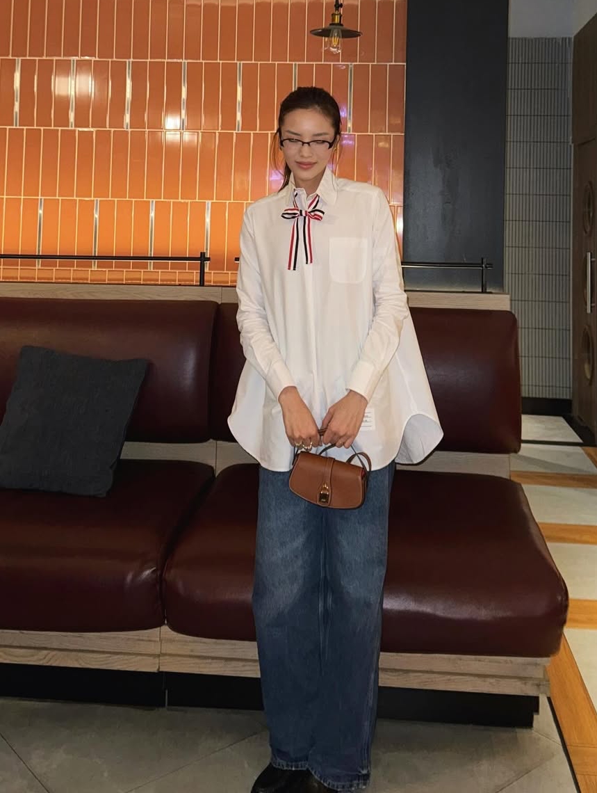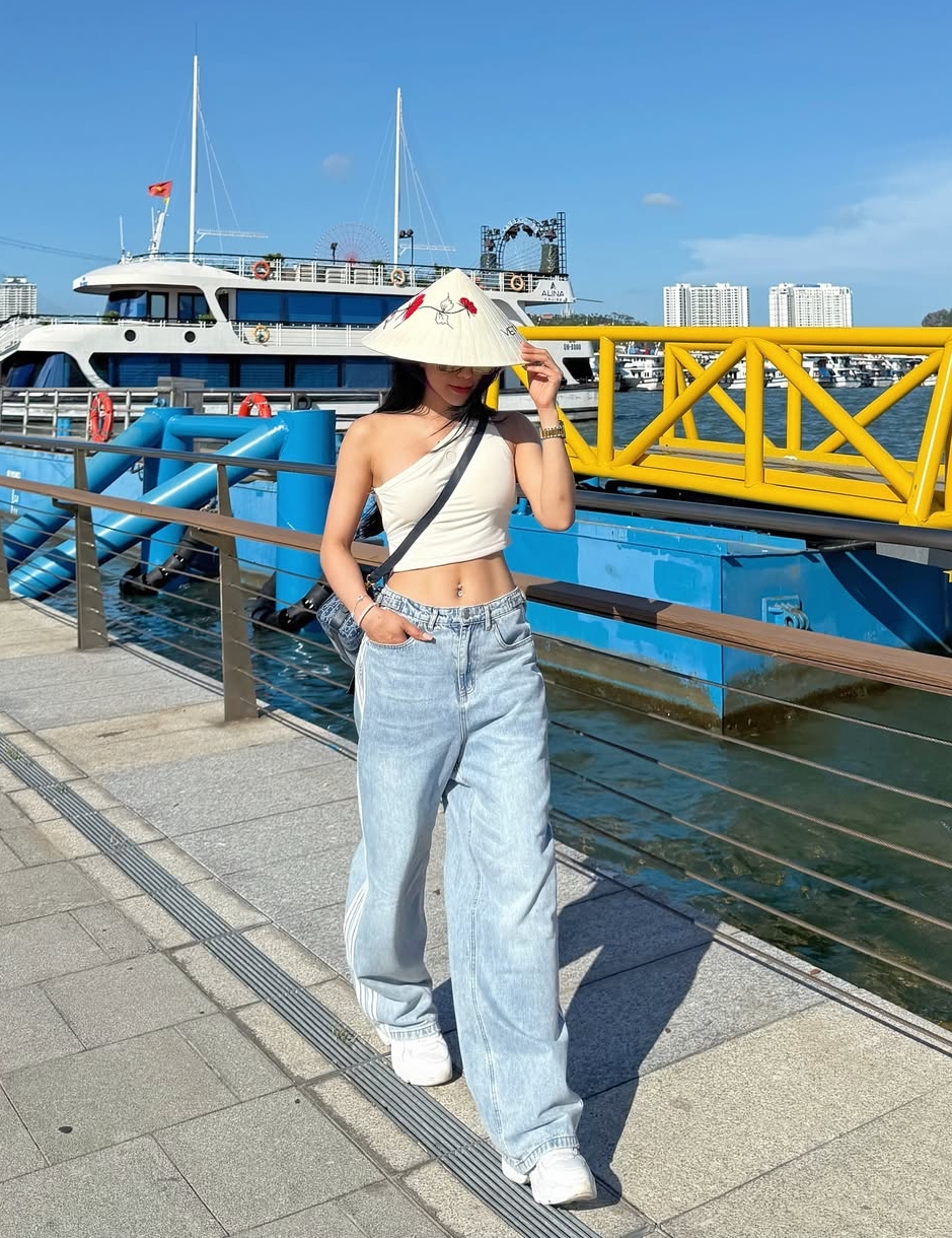 Ky Duyen is a fan of wide-leg pants in various fabrics. She often pairs them with t-shirts and oversized shirts for a unisex look.