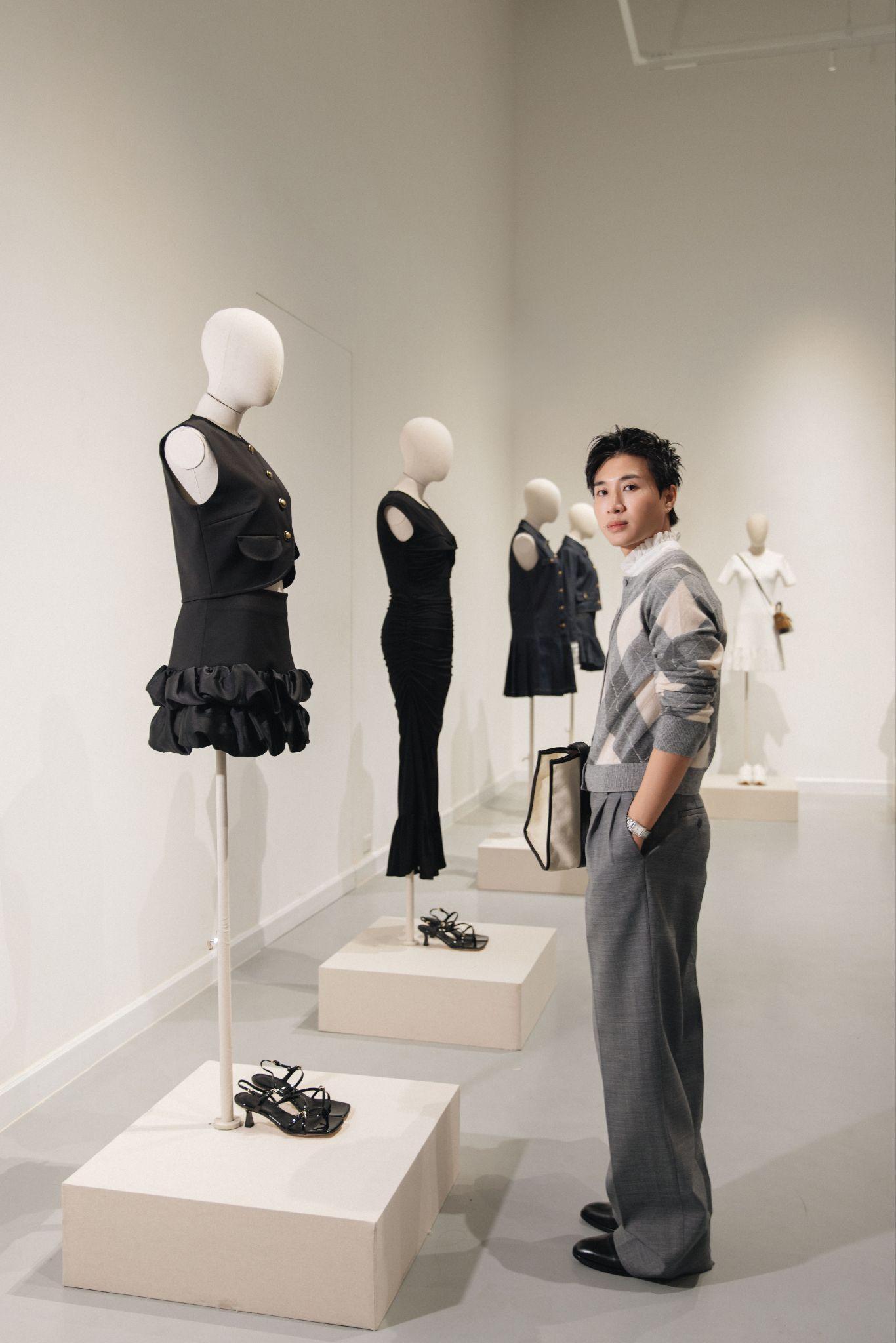 Stylist Pham Bao Luan chose a gray cardigan and trousers for a comfortable, elegant feel. Photo: Sandro