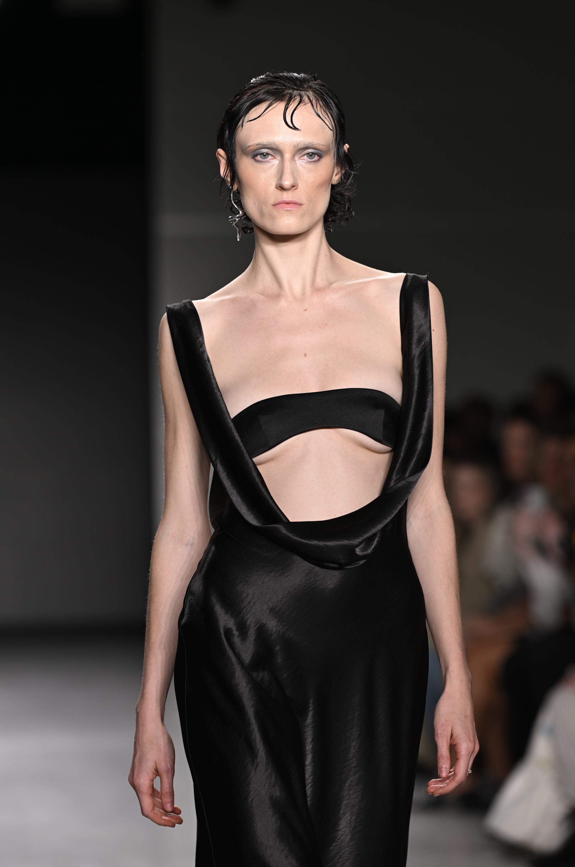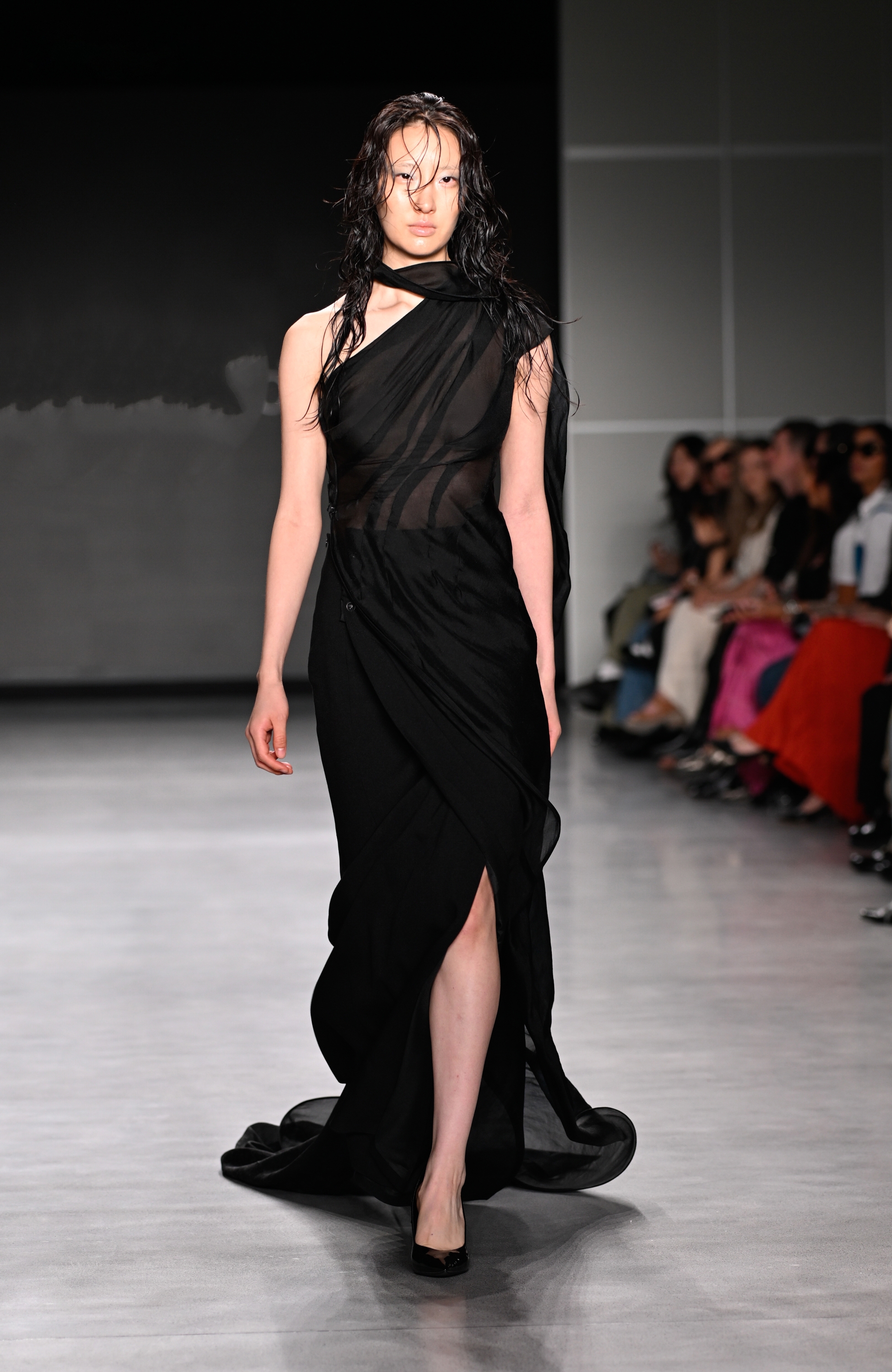 In addition to everyday wear, the show also presented minimalist evening attire with sharp tailoring. |