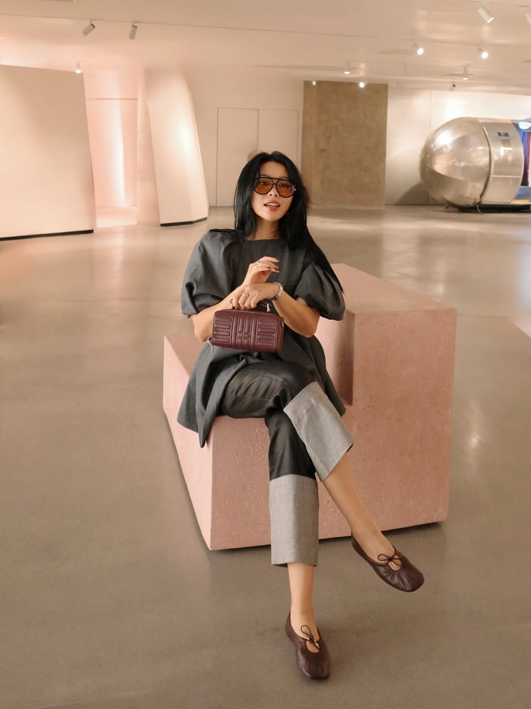 Beauty blogger An Phuong chose to use the Groove as a clutch, transforming it into a focal point with her dark-toned attire, a departure from Luong Thuy Linh's crossbody styling.