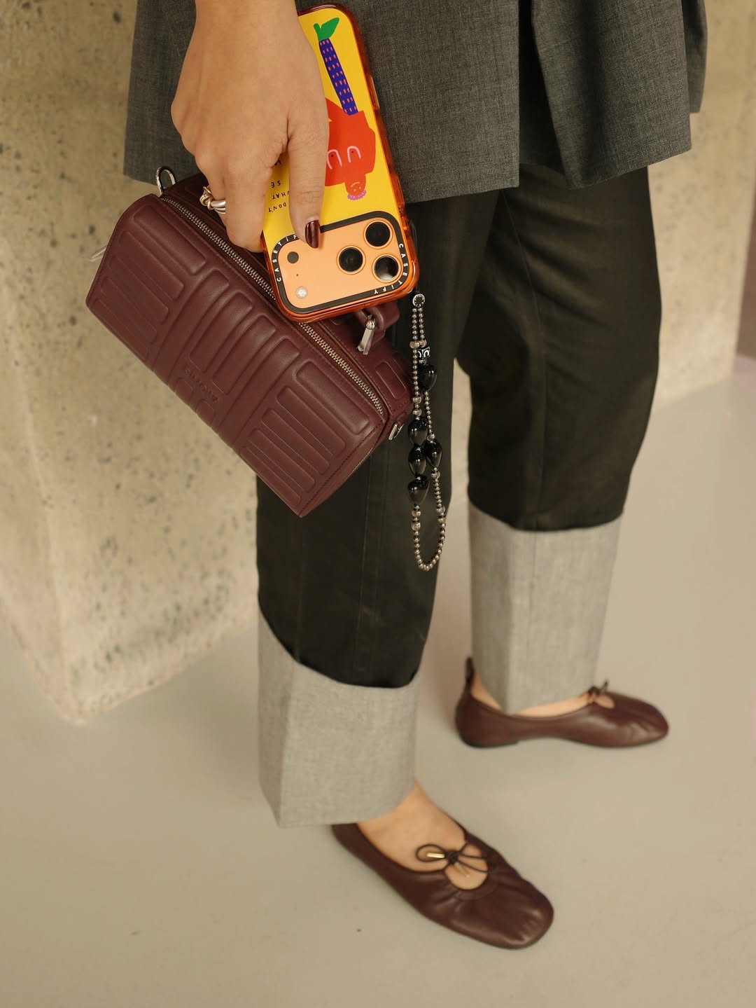 Stylist Hoang Ku selected the Groove as an accessory to complement a neutral outfit.