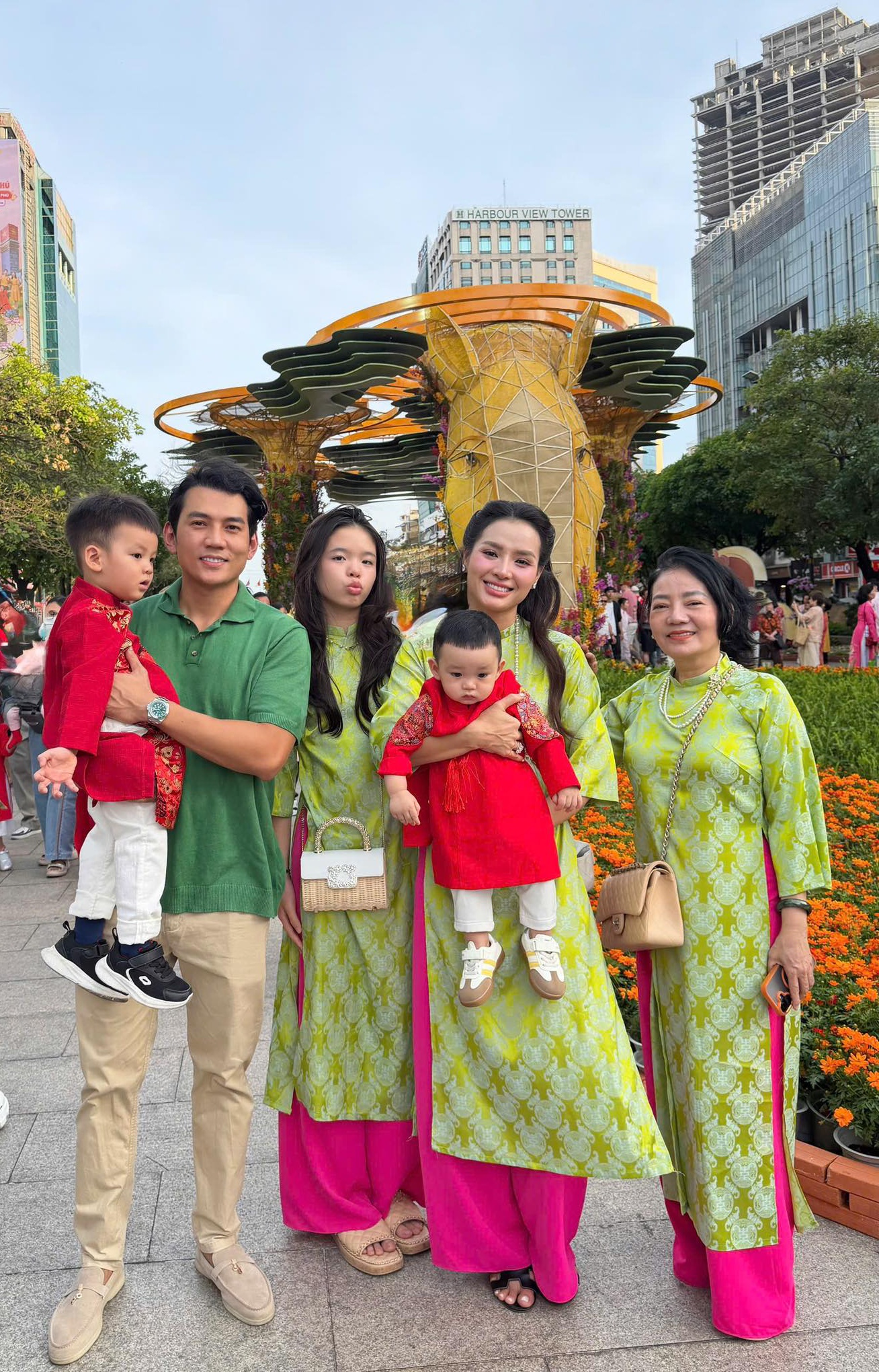 Actress Van Trang’s family took a Tet photo series in both southern and northern styles. She noted that as her children grow older, they understand Tet more, eagerly anticipating lucky money and spring outings with their parents.
