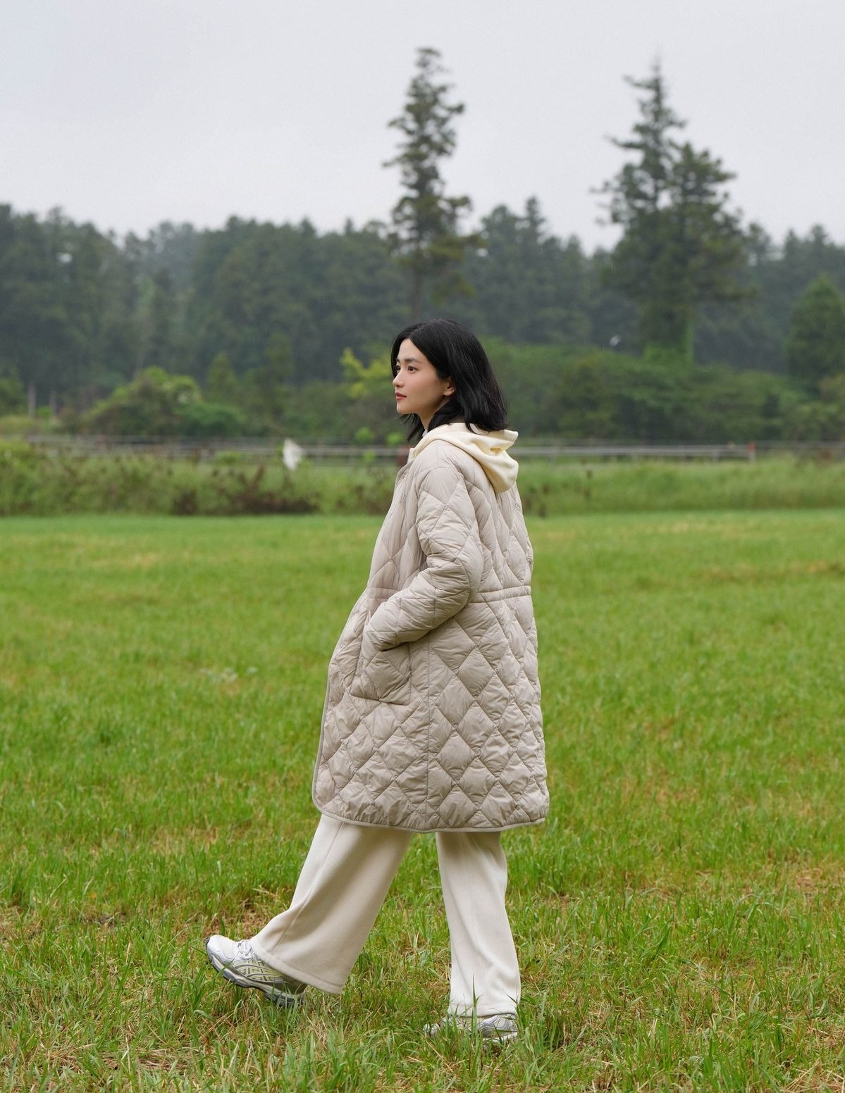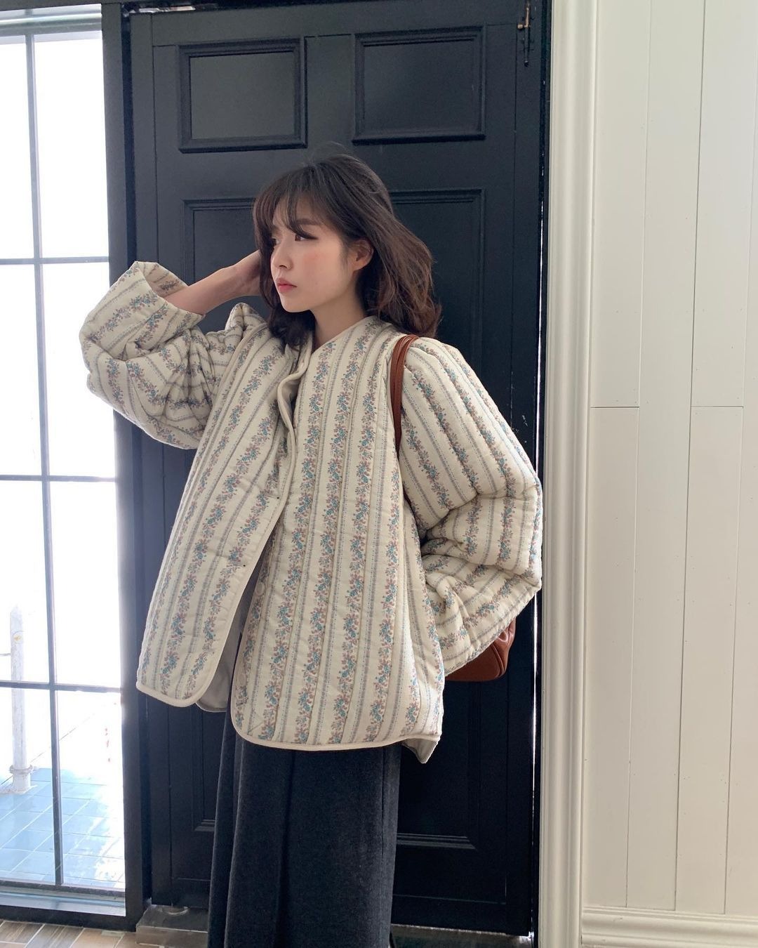 Young women in Vietnam, Korea, China, and Europe are embracing quilted vests, featuring floral patterns or solid colors. Young people refer to these designs as "grandma's vests" because elderly women traditionally wore them for daily tasks like going to the market or cooking. The vests feature sleeveless or long-sleeved styles, often made from a waterproof cotton-blend fabric with a cotton-padded interior and extensive quilting throughout the garment.