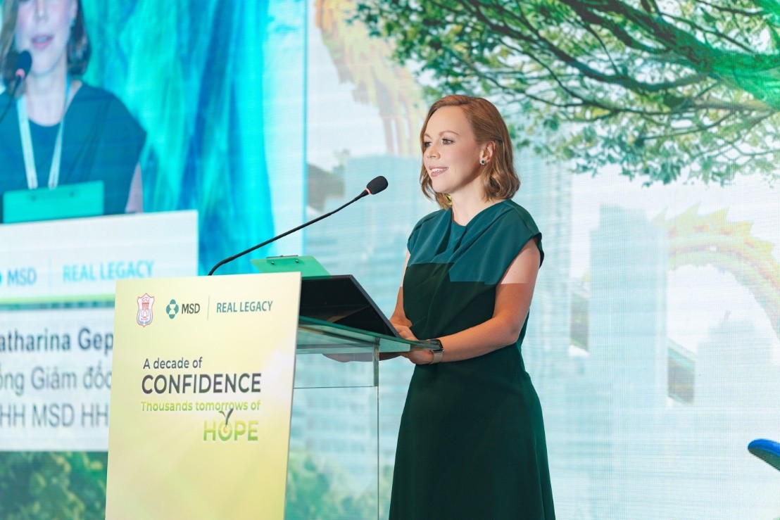 Katharina Geppert, General Director of MSD Vietnam, stated that the workshop marked 10 years of MSD's cancer immunotherapy being used in treatment in Vietnam. With 27 approved indications for 13 cancer types, this therapy has benefited over 10,000 patients nationwide.