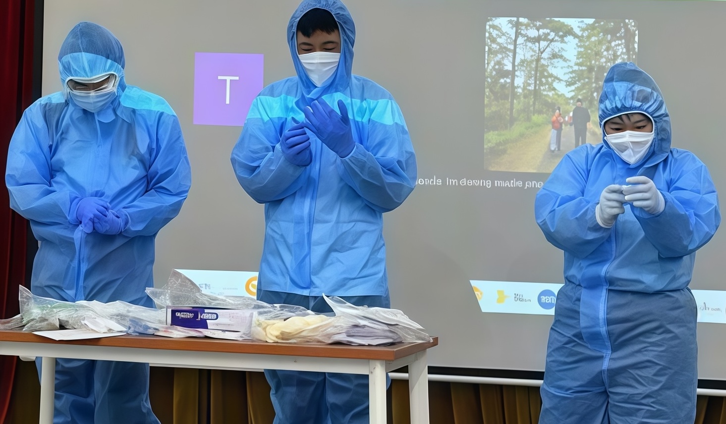 Member of the Rapid Response Team (RRT) being instructed on the proper use of personal protective equipment (PPE). Photo: HCDC