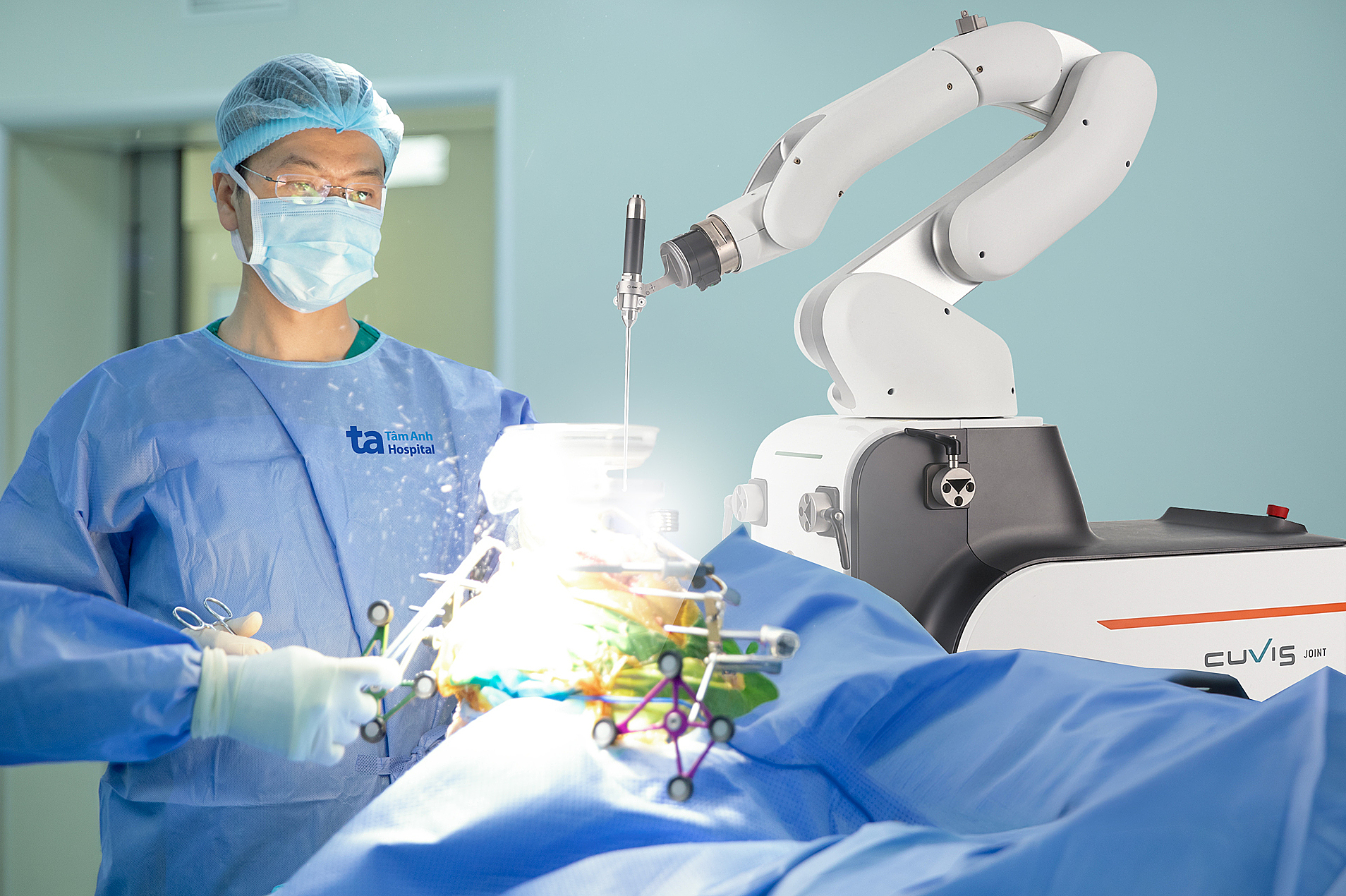 Doctor Hoc used the Cuvis-Joint robot, integrated with artificial intelligence (AI), for Ms. Hong's knee replacement. *Tam Anh General Hospital* |