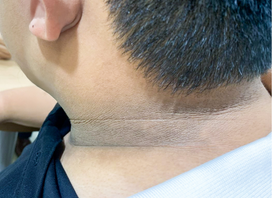 The dark rings around Khang's neck are a sign of obesity. Photo: Tam Anh General Hospital