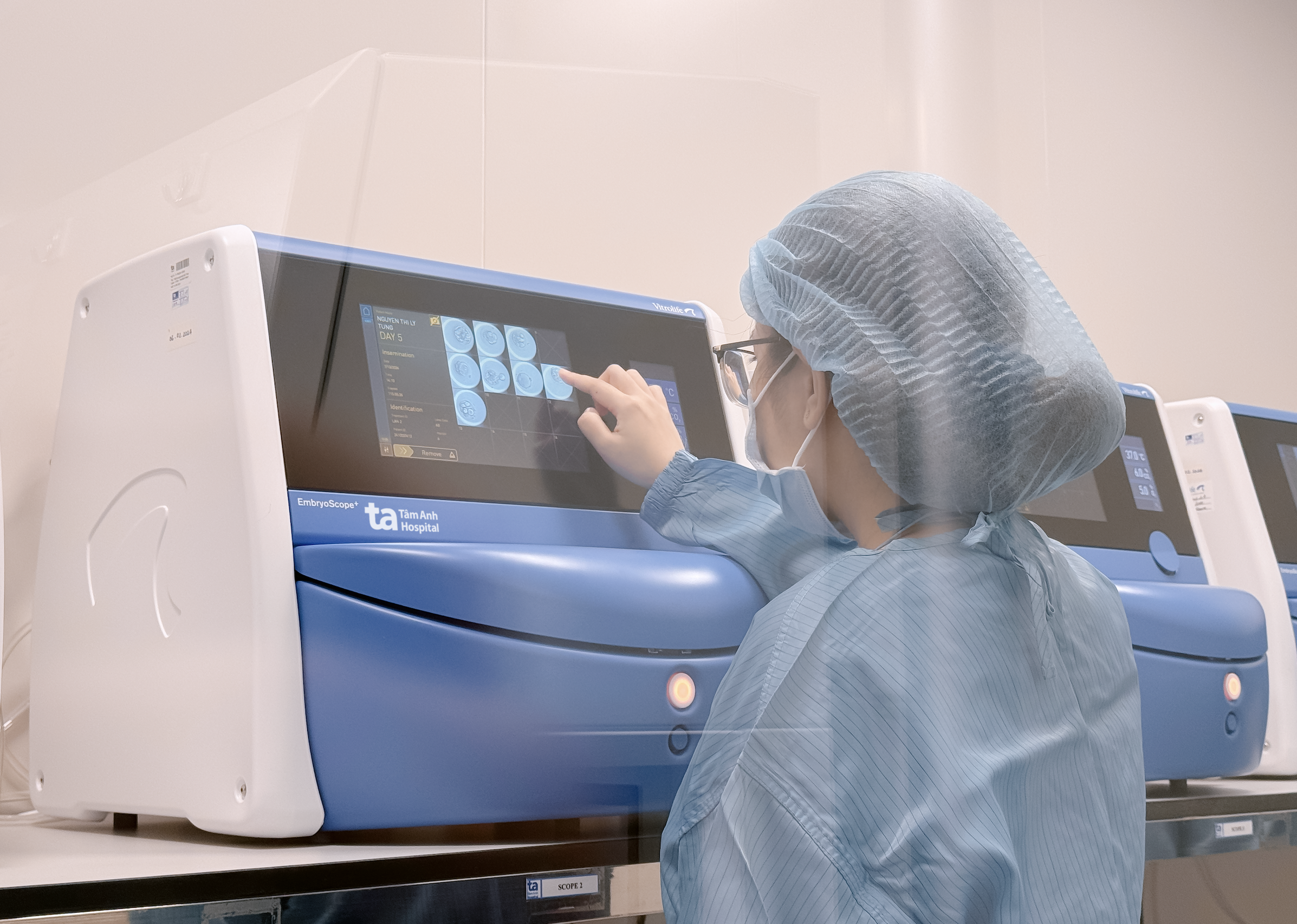 An embryologist observes embryo development through the incubator system. Photo: Phuong Trinh