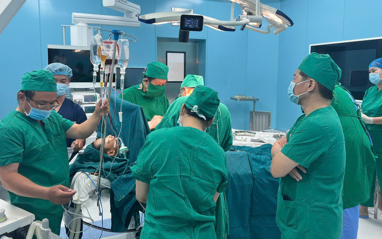 On 9/9, Professor Doctor Tran Vinh Hung, director of Binh Dan Hospital, and his surgical team arrived in Con Dao and decided to operate. Doctor Luong Thanh Tung, deputy director of Binh Dan Hospital, led the surgical team. A laparoscopic examination revealed extensive damage: a ruptured left kidney, torn abdominal muscles, hemothorax (blood in the chest cavity), and a bruised pancreatic tail. A large hematoma surrounded the shattered left kidney, making it impossible to save.