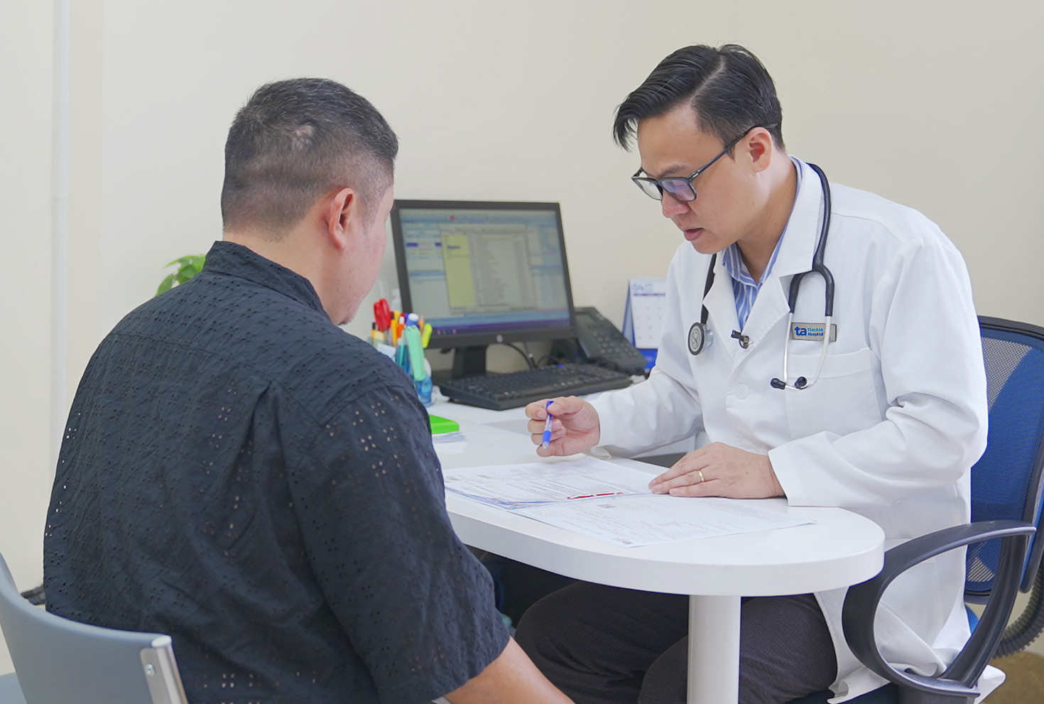 Doctor Ngoc reviews test results and explains them to Mr. Hung. *Photo: Tam Anh General Hospital*.