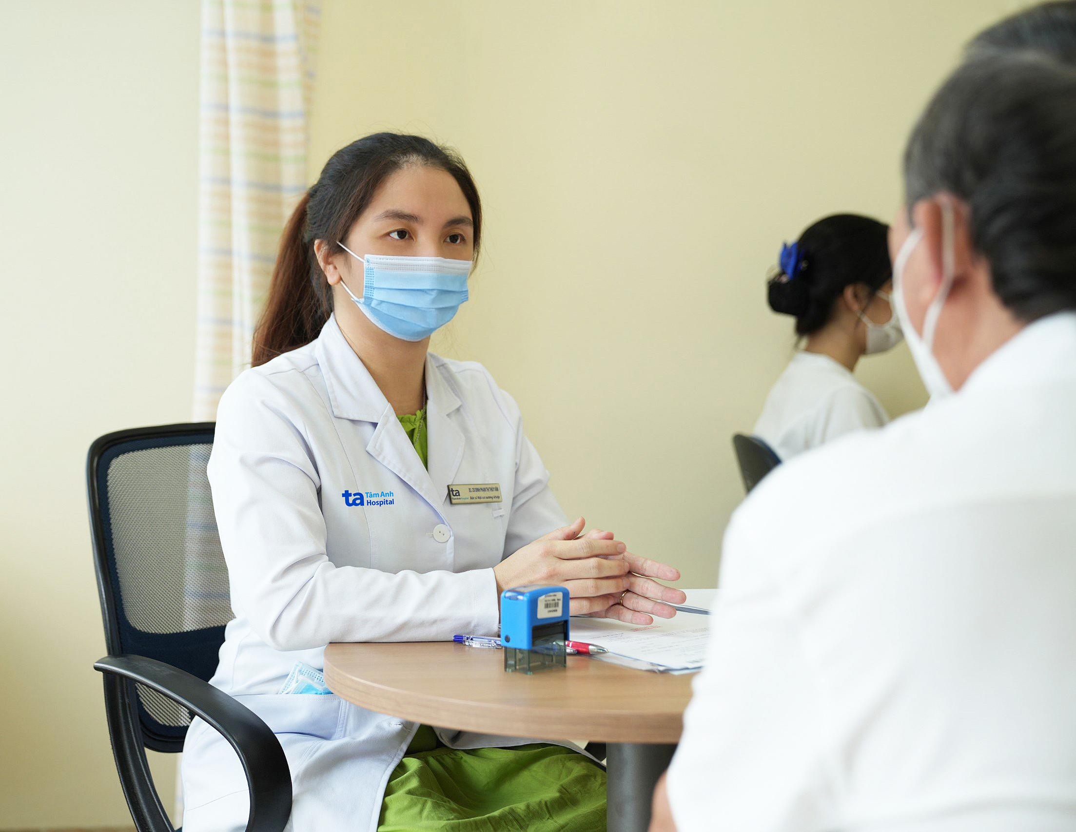 Doctor Van explains bone density test results to a patient. Photo: Tam Anh General Hospital