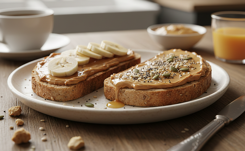 Whole-wheat bread with peanut butter: A slice of rye or whole-wheat bread spread with a tablespoon of peanut butter provides a good source of magnesium and healthy protein. This combination promotes satiety, keeping you full without impacting blood sugar levels. The gentle sweetness from peanut butter also helps calm the nervous system. |