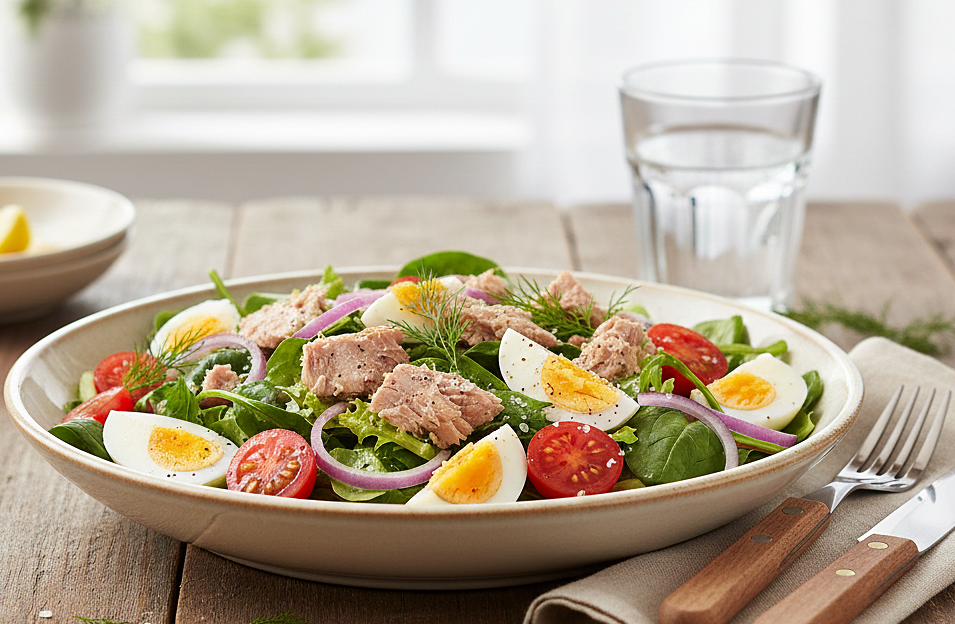 Tuna salad: As a fatty fish, tuna is rich in omega-3s, which aids in restful sleep. It also serves as a source of vitamin B6, supporting melatonin production and mental calm. Prepare tuna salad with cucumber for hydration and calorie control, or with lettuce and avocado for balanced fiber. Avoid bottled sauces, which often contain excessive seasonings and can elevate blood sugar levels. |