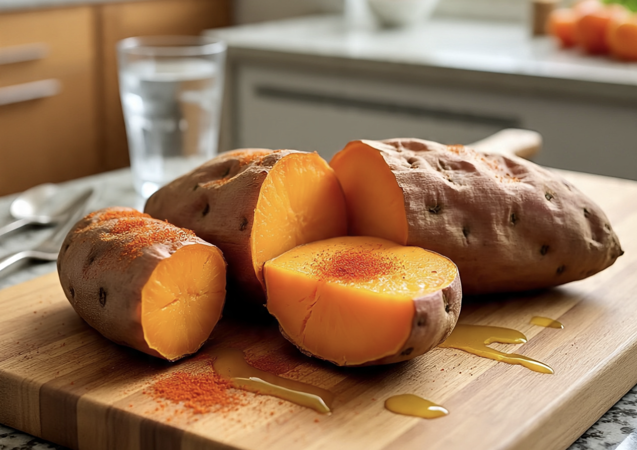 Sweet potatoes provide a significant amount of vitamin A. A medium sweet potato offers about 1,190 mcg of vitamin A, which is more than 150% of the daily need in one serving. This root vegetable contains pre-vitamin A carotenoids, such as beta-carotene, an inactive form of the vitamin responsible for its deep orange color, which also functions as an antioxidant.