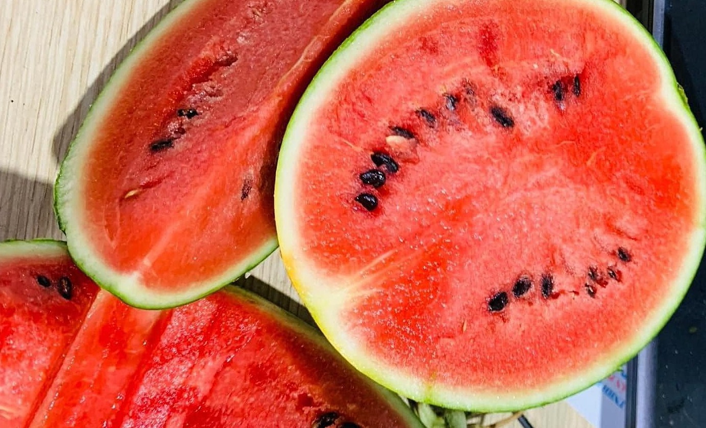 Watermelon is sweet and delicious, yet it has a relatively low natural sugar content. One cup of diced watermelon contains 9 g of sugar and about 45 calories. Watermelon is 92% water and low in carbs, which helps promote satiety, reduce hunger, and thus control calorie intake.