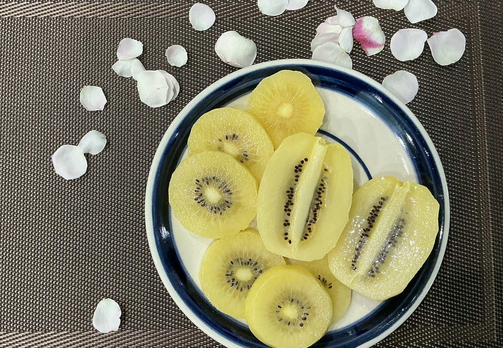 Kiwi contains 7 g of sugar per fruit. These small green fruits have a low glycemic index and provide ample fiber. One kiwi meets 62% of the daily vitamin C value and offers 2,3 g of fiber, all for just 48 calories, eliminating concerns about sugar storage.