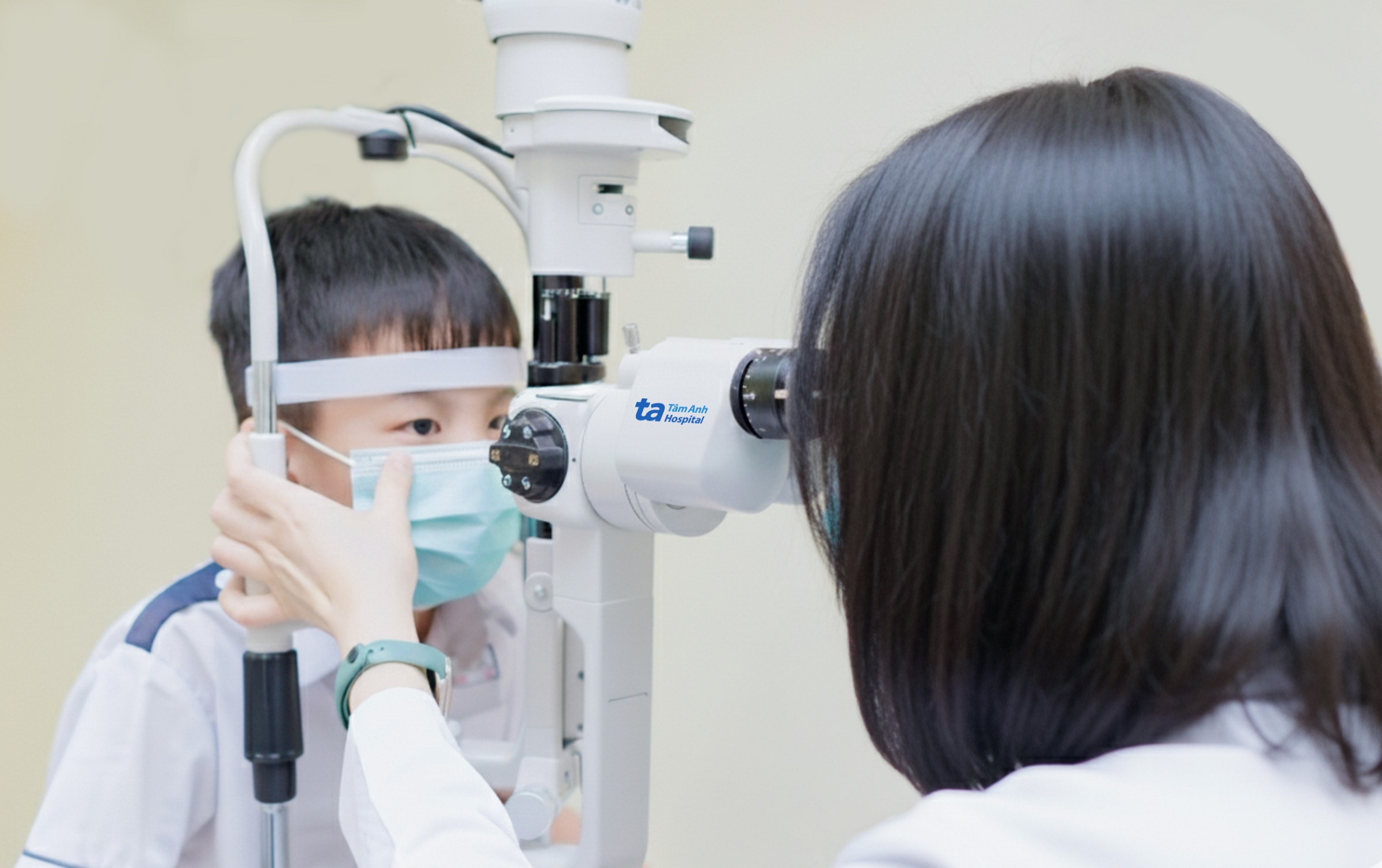 A doctor examines a boy's eyes at the High-Tech Eye Center. Illustrative photo: Tam Anh General Hospital |