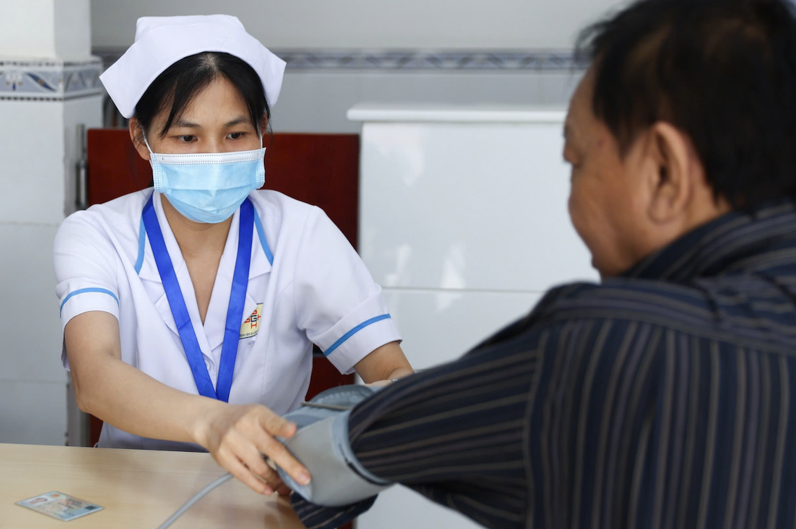 Healthcare workers measure blood pressure for residents. *Photo: Quynh Tran* |