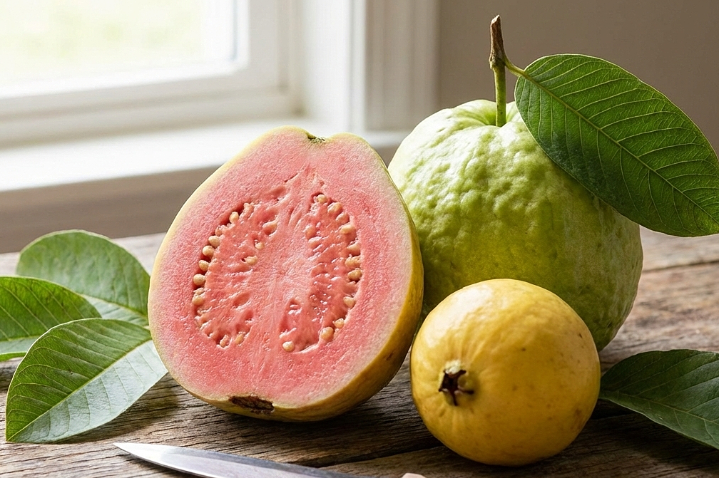 **Guava** provides approximately 6 g of fiber per 120 g serving, surpassing apples. It also contains more vitamin C than oranges, contributing to prolonged satiety and enhanced immune health. For weight loss, guava can be consumed with its skin or blended into smoothies. However, individuals with stomach sensitivities should avoid eating guava seeds on an empty stomach to prevent irritation.