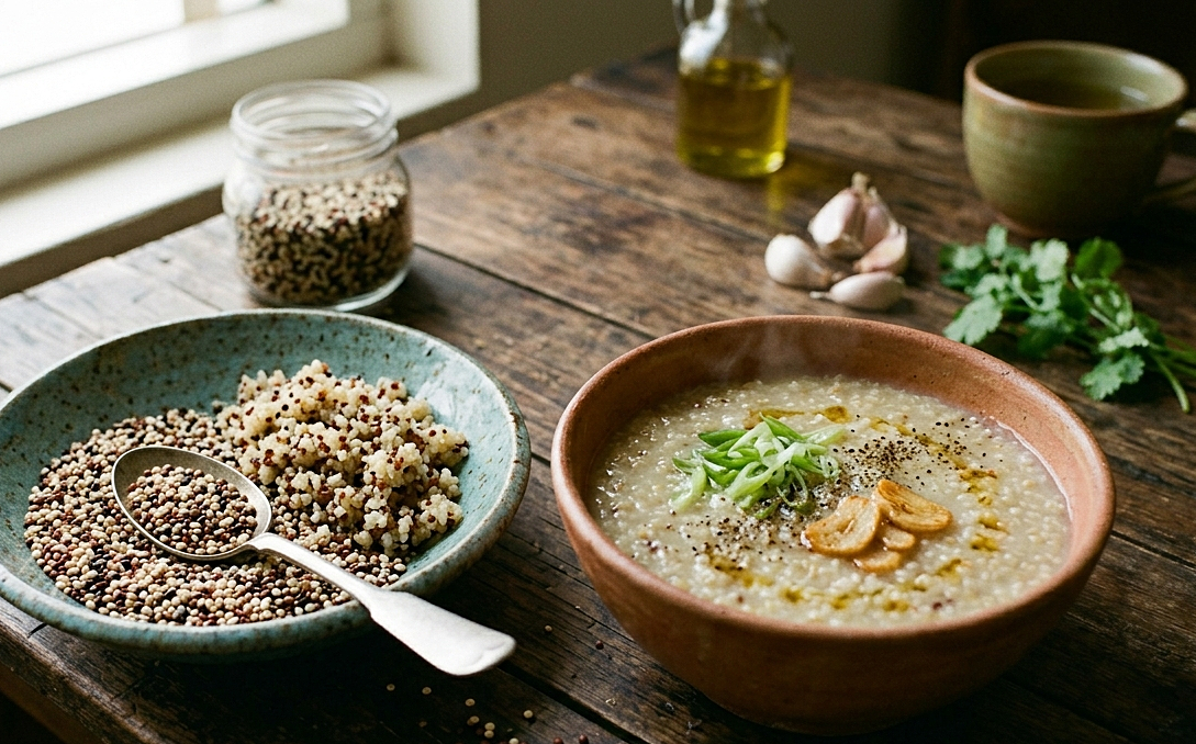 Cooked quinoa provides over 5 g of insoluble fiber, supporting stable bowel movements. It also contains protein, zinc, folate, and antioxidants. Quinoa is a versatile ingredient for cereals, porridge, or as a rice substitute.