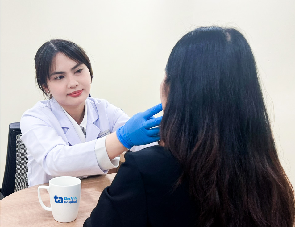 Dr. Tran examines a patient's skin. Illustrative photo: Tam Anh General Hospital |