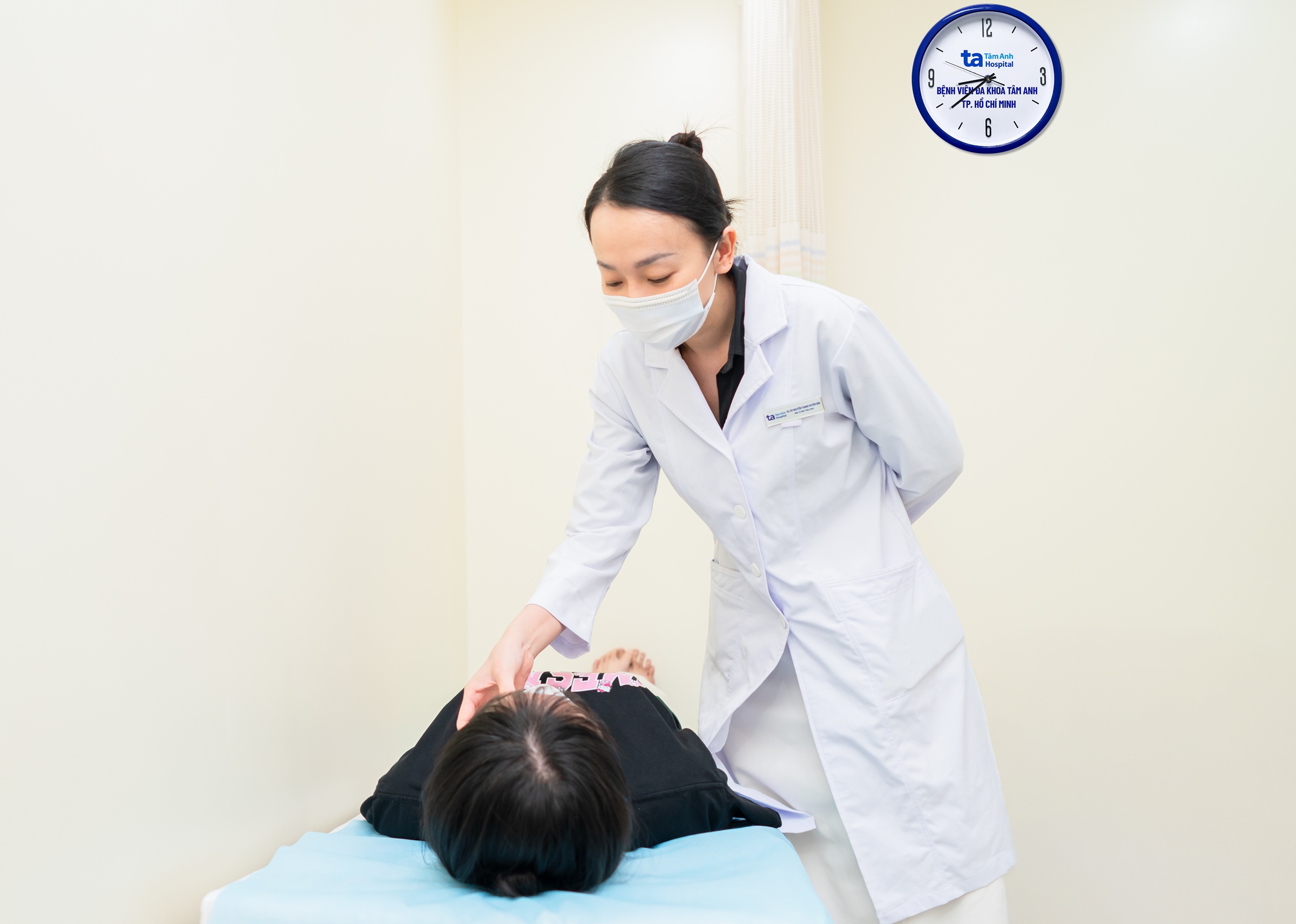 Dr. Huyen Van examining a patient. Photo: Tam Anh General Hospital |