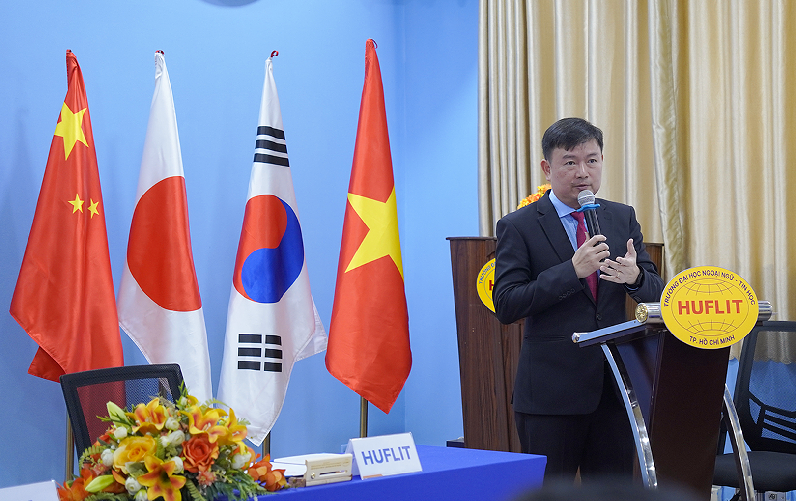 Doctor Nguyen Anh Tuan, Rector of HUFLIT, speaks at the ceremony. Photo: Hospital provided |