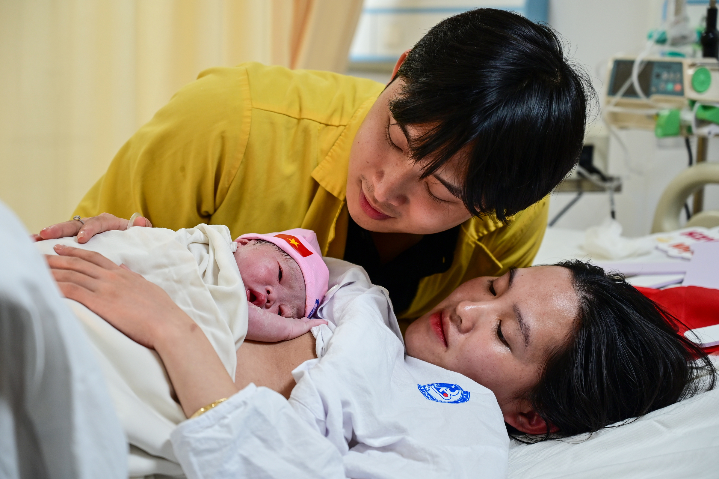 Being in the delivery room with her daughter for the first time, Ms. Ha was both emotional and joyous as her family welcomed a new member on this special occasion, celebrating independence day with complete happiness. "The whole family is very moved and proud," she said.