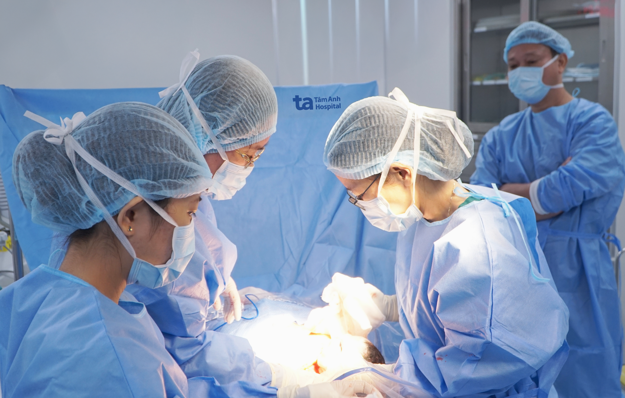 Doctor Lam Khoa (second from the right) performing surgery on the expectant mother. Photo: Tue Diem |