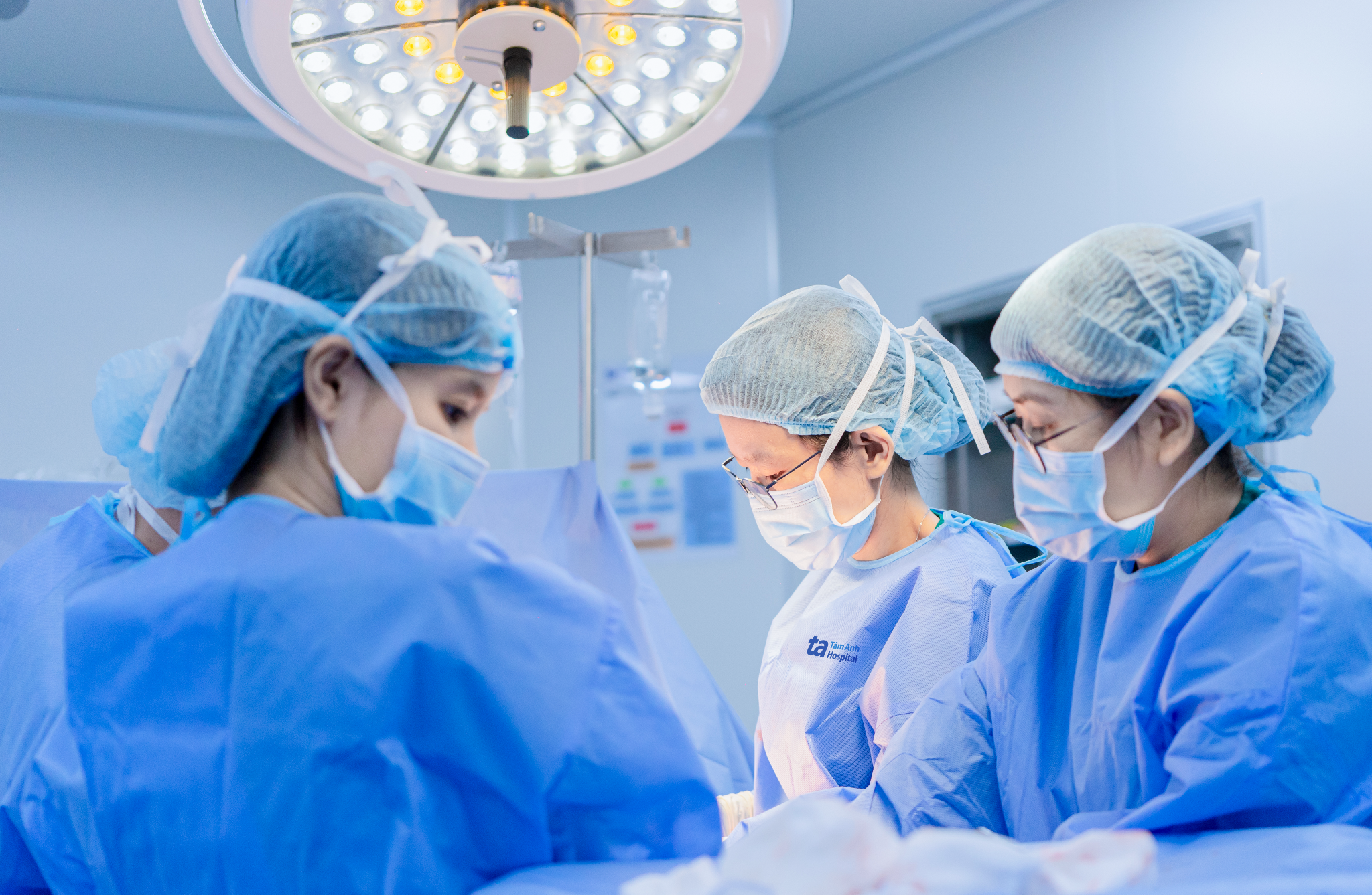 The surgical team performing a C-section for the pregnant woman. *Photo: Tam Anh General Hospital* |