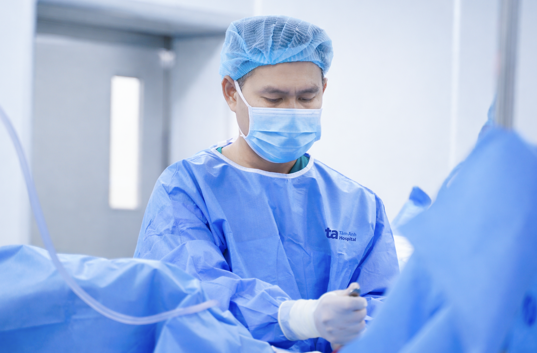 Doctor Duy performs endoscopic surgery on Vuong. Photo: Tam Anh General Hospital.